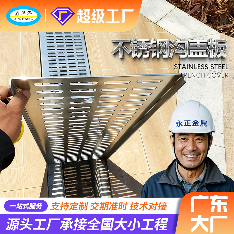 工場の排水溝板のサイズやスタイルは全てカスタマイズ可能です。溝の滑り止めと雨よけを備えた304ステンレス製排水溝板
