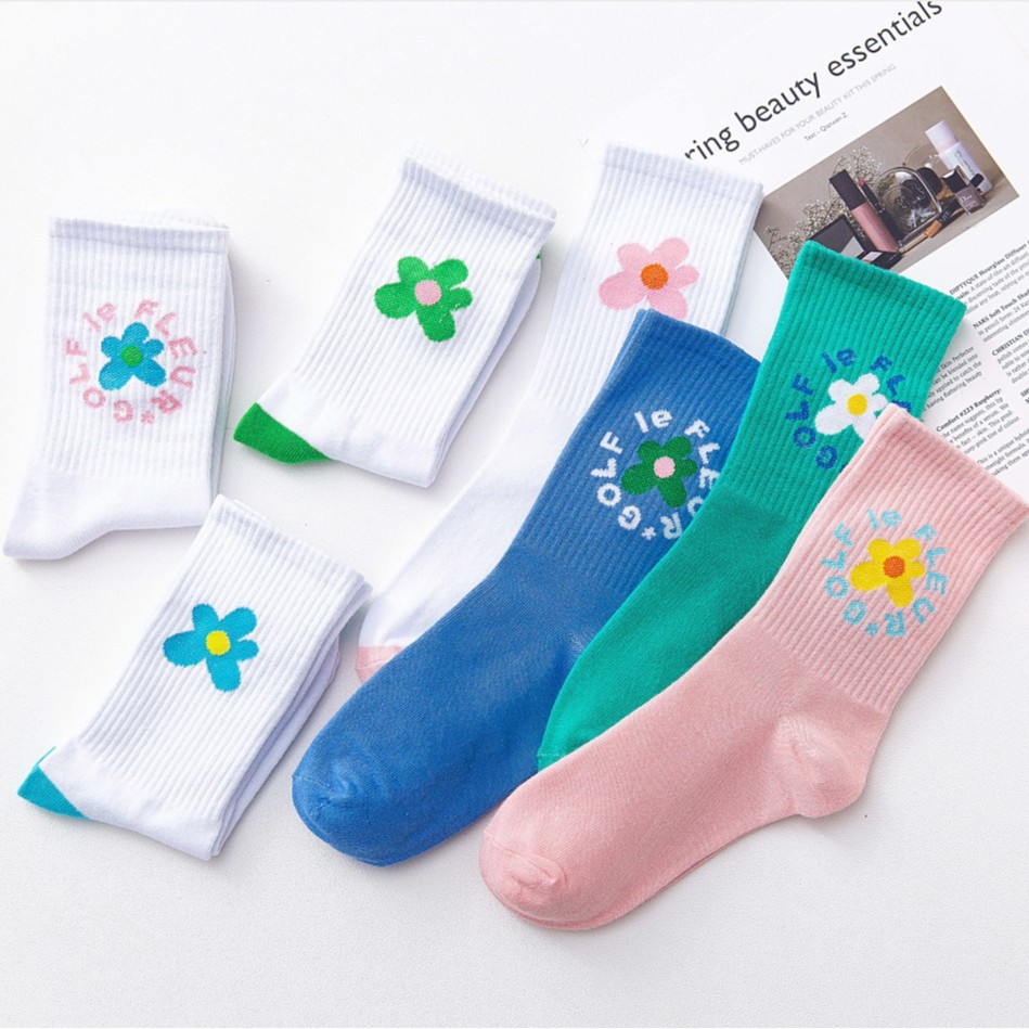 靴下 レディース 春秋 小花柄靴下 スポーツ ロングソックス 花柄 韓国風 ヒョナ風 男女兼用 カップルソックス