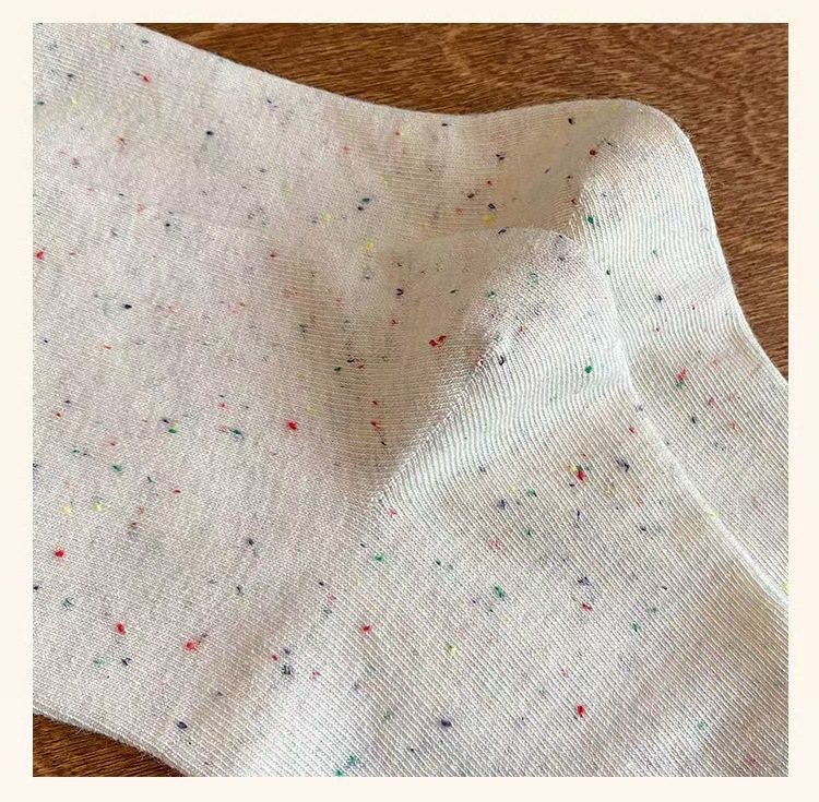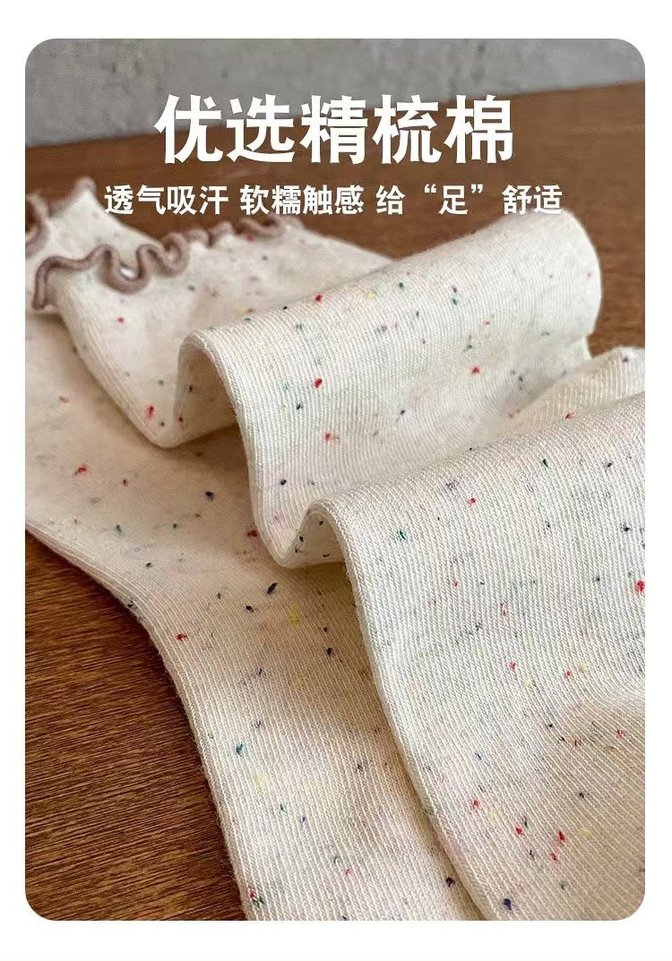 春夏のシンプルな純色の中筒の靴下に合わせて、ストッキングの韓国版の波点の木の耳元の月子の靴下の女性を積み重ねます。