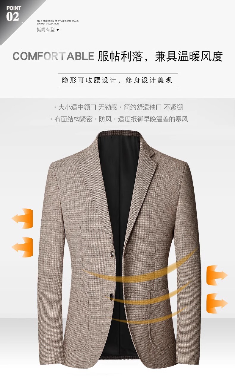 2025春秋メンズ新作スーツウールジャケット中年カジュアルシングルスーツジャケットお父さん向けスリムフィットノーアイロン