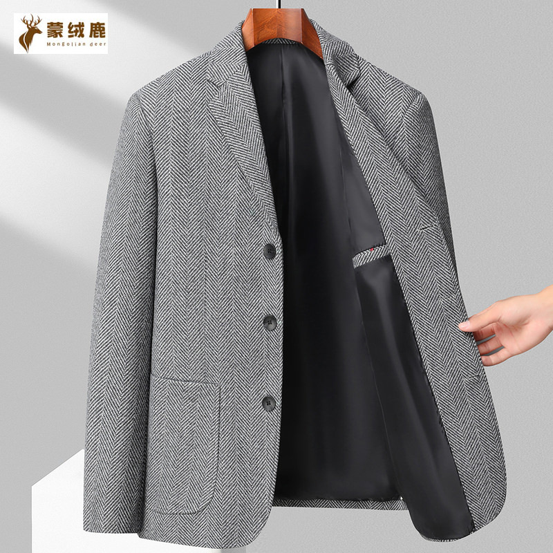 爆発的な春と秋のカジュアルスーツの男性秋冬の新しい中年の毛のスーツは春と秋のシングルスーツの上着を修理します。