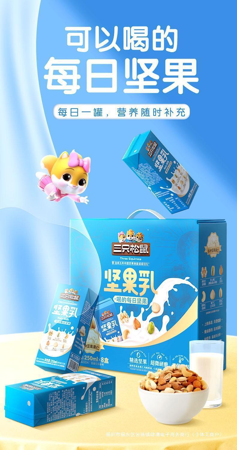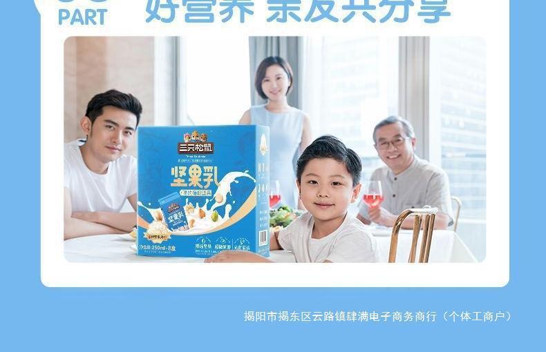【三只松鼠_坚果乳250ml×8盒】植物蛋白饮料核桃乳杏仁整箱