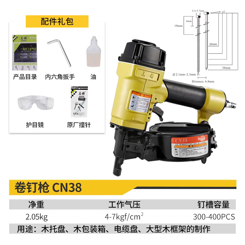 中杰卷钉枪CN55气动钉枪木工专用cn70螺纹卷钉枪托盘工业级气钉枪