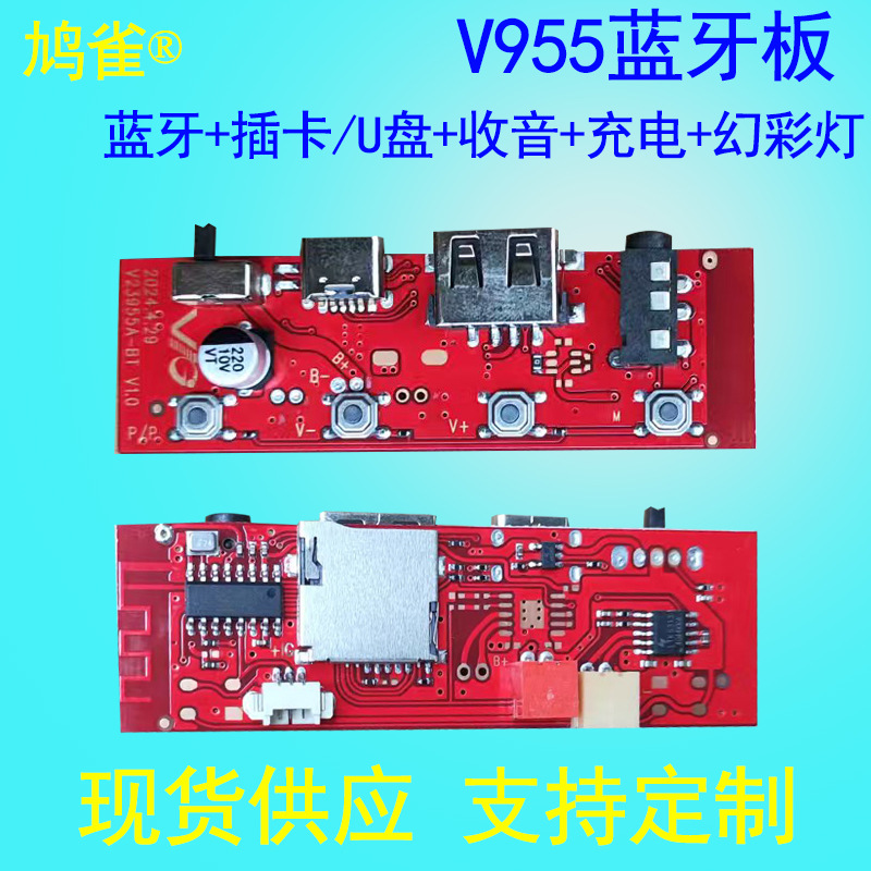 蓝牙音响电路板功放模块解码板子V955线路板幻彩灯RGB充电3.7v