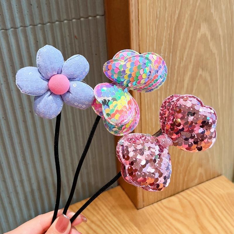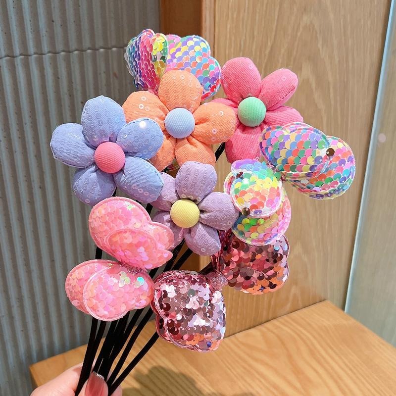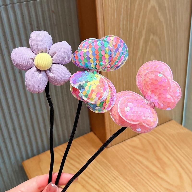 子供の花の髪の棒の団子の頭の髪の神器の2024の新型のかわいい女の子の夏は髪を傷つけません。