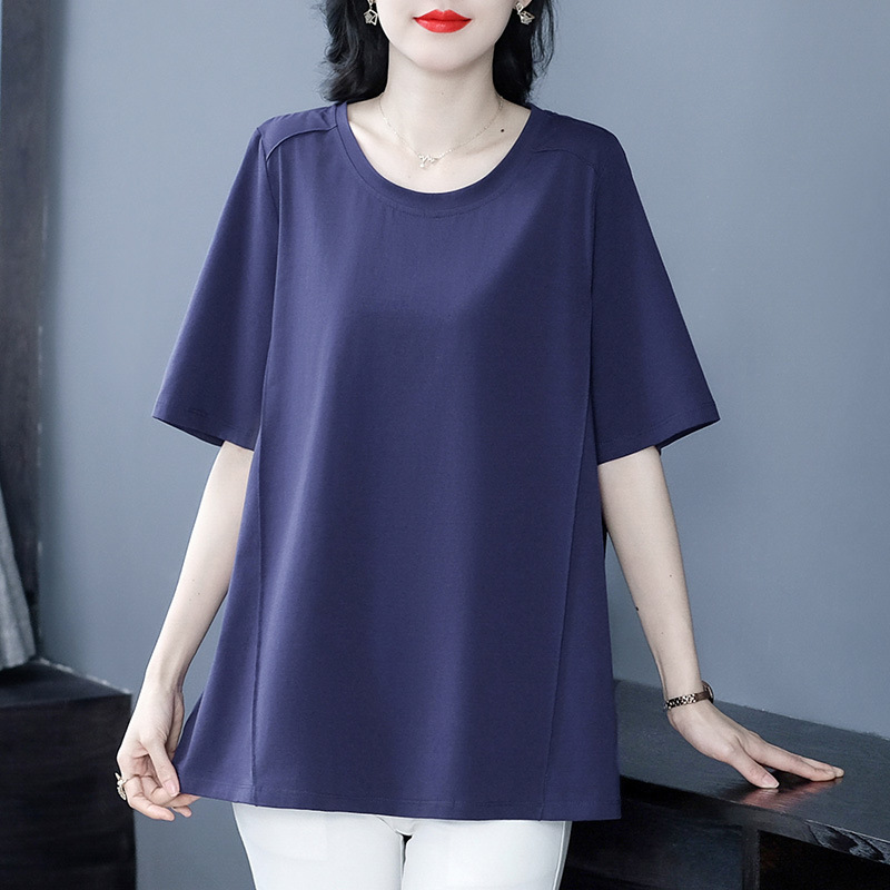 綿の半袖tシャツの太った妹のmmのゆったりしている大きいサイズの婦人服の2025年の夏服の新型は腹を遮ってやせている上着を現します。