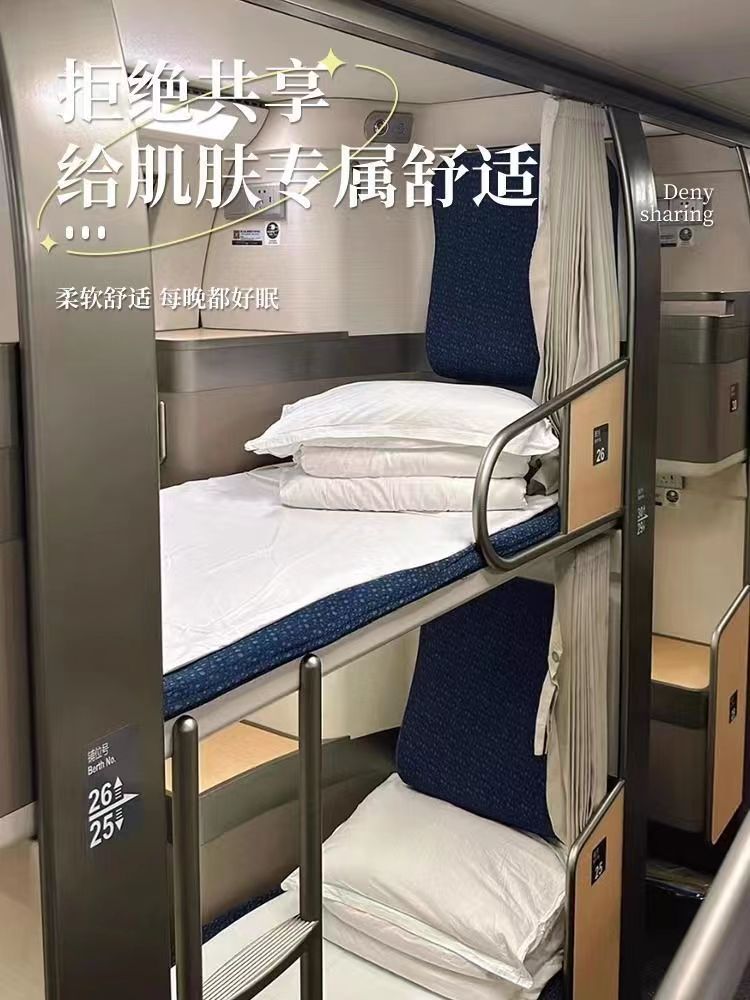 列車の寝台の使い捨てシーツは枕カバーで旅行します。