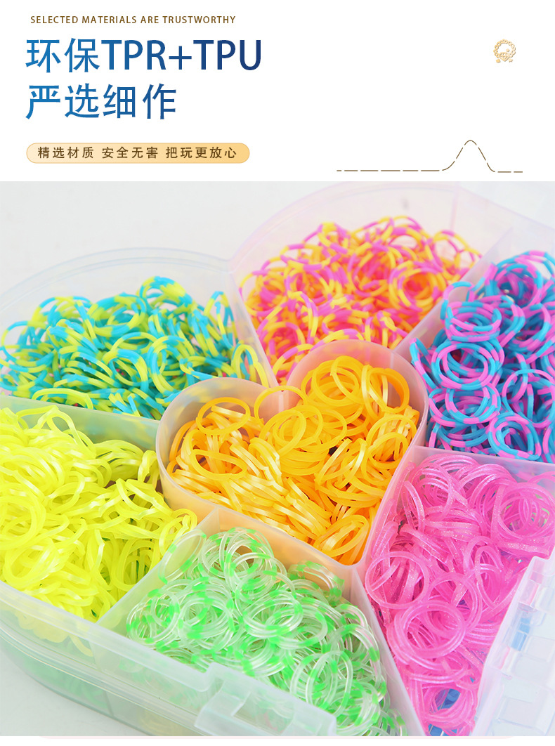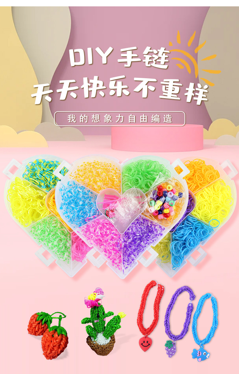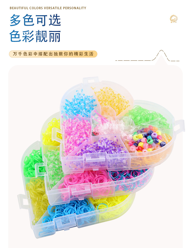 20色4000本の皮輪桃心三層皮筋手提げ玩具クロスボーダー知育織り愛虹輪ゴム