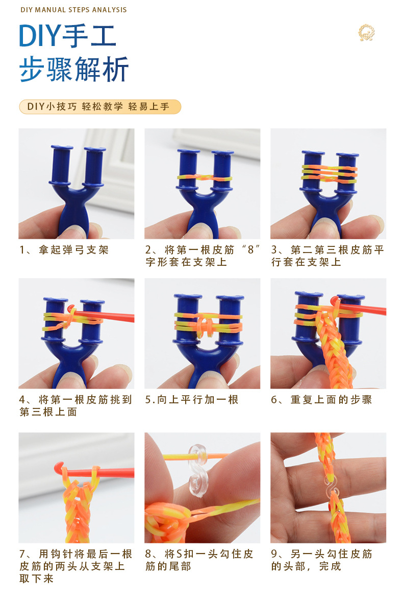 メーカー直販プラスチック小かぎ針虹ゴム編みツールdiy益智玩具セットブレスレット部品