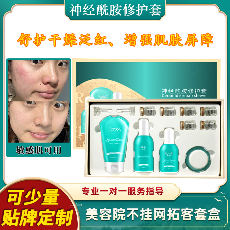 精華液の明るい肌の乳のアミドの修理はしっかりと水の保湿の美容院のスキンケアのセットの4セットの庭の線を補います。