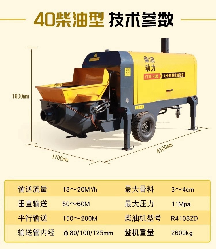 大型コンクリート輸送ポンプディーゼル二次構造柱ポンプ保護坂トンネルコンクリート打設輸送ポンプ機