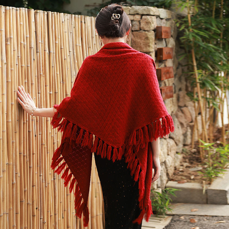 民族風のストールの女性は秋冬に長いタイプのレトロなマントのフリンジのマントのマフラーを掛けます。