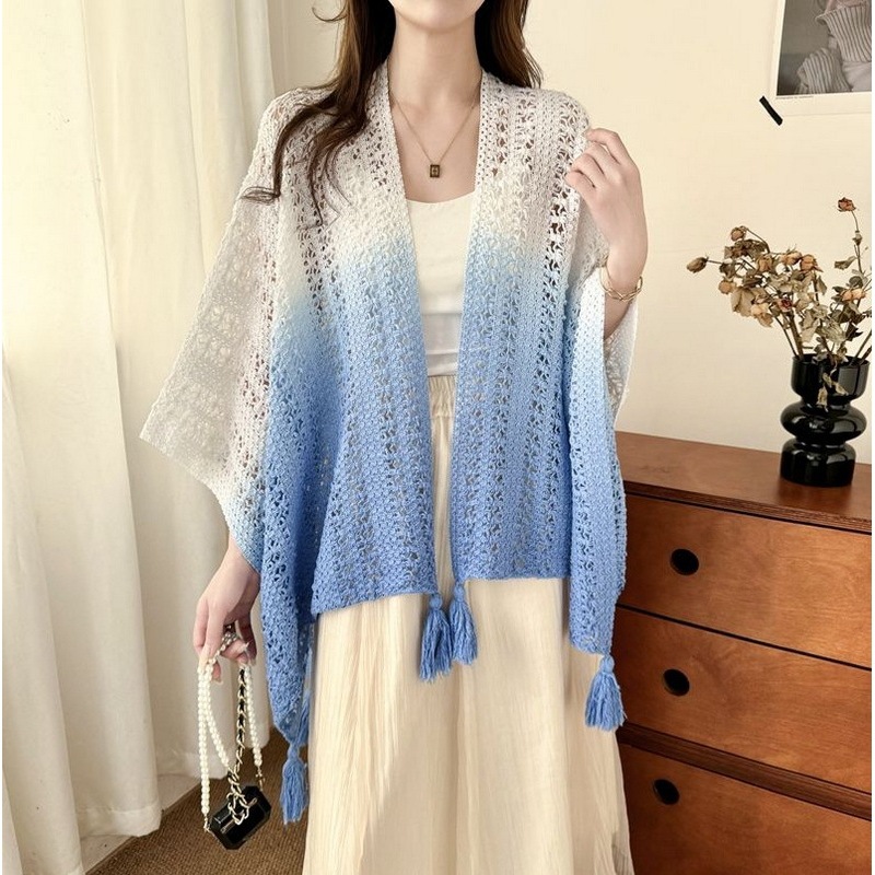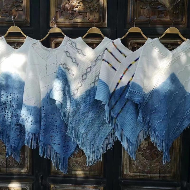 民族风披肩云南扎染色围巾保暖防晒超大披风斗篷薄款休闲镂空超仙