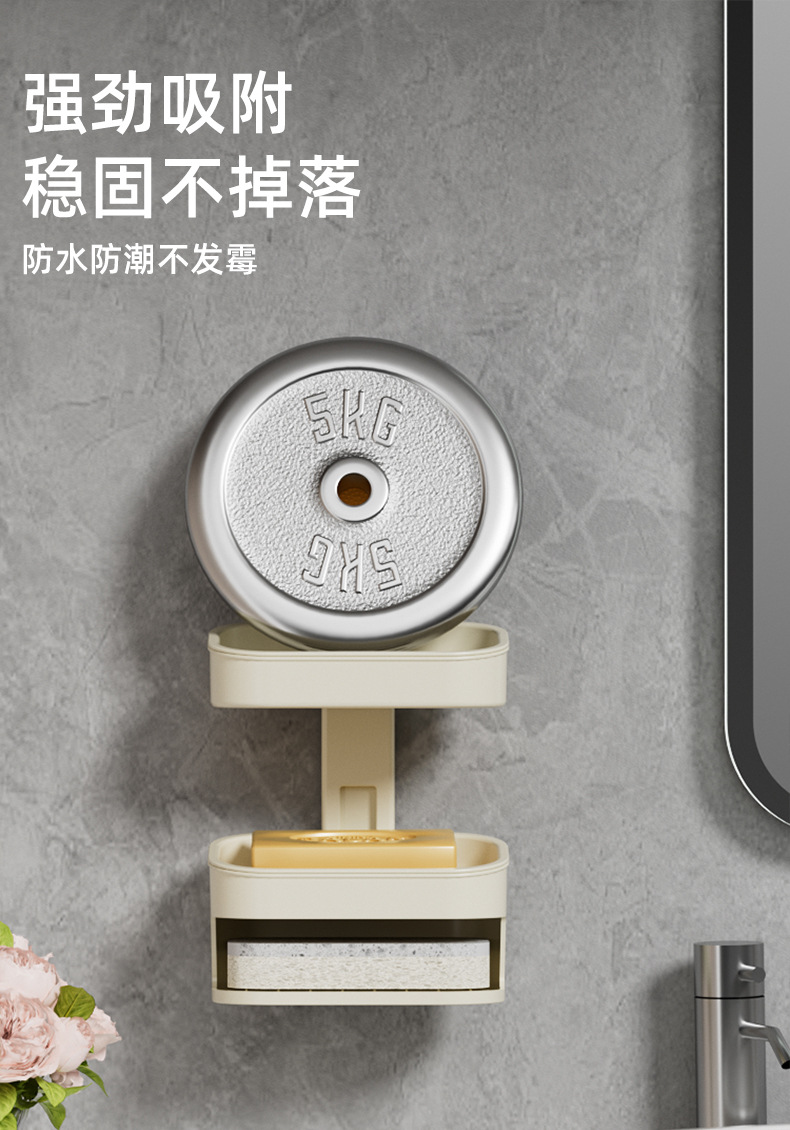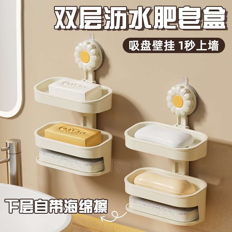 吸盘家用高档沥水肥皂架香皂盒浴室卫生间壁挂式双层免打孔肥皂盒