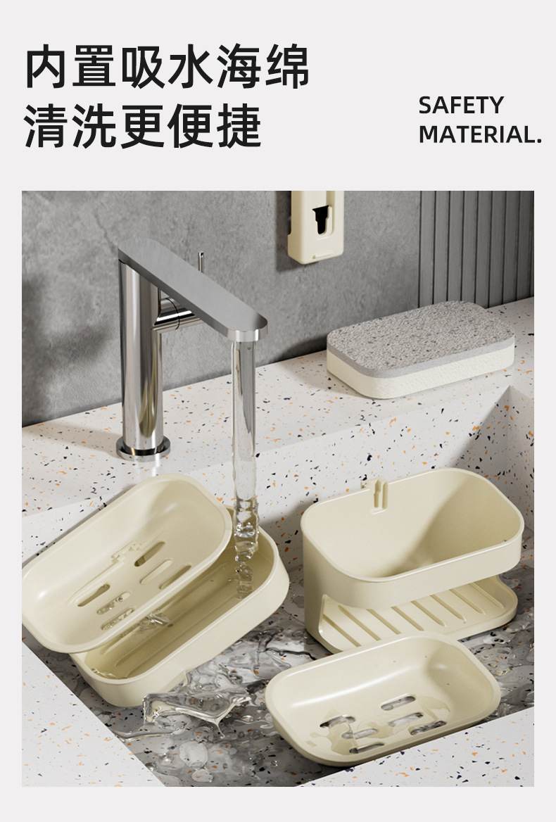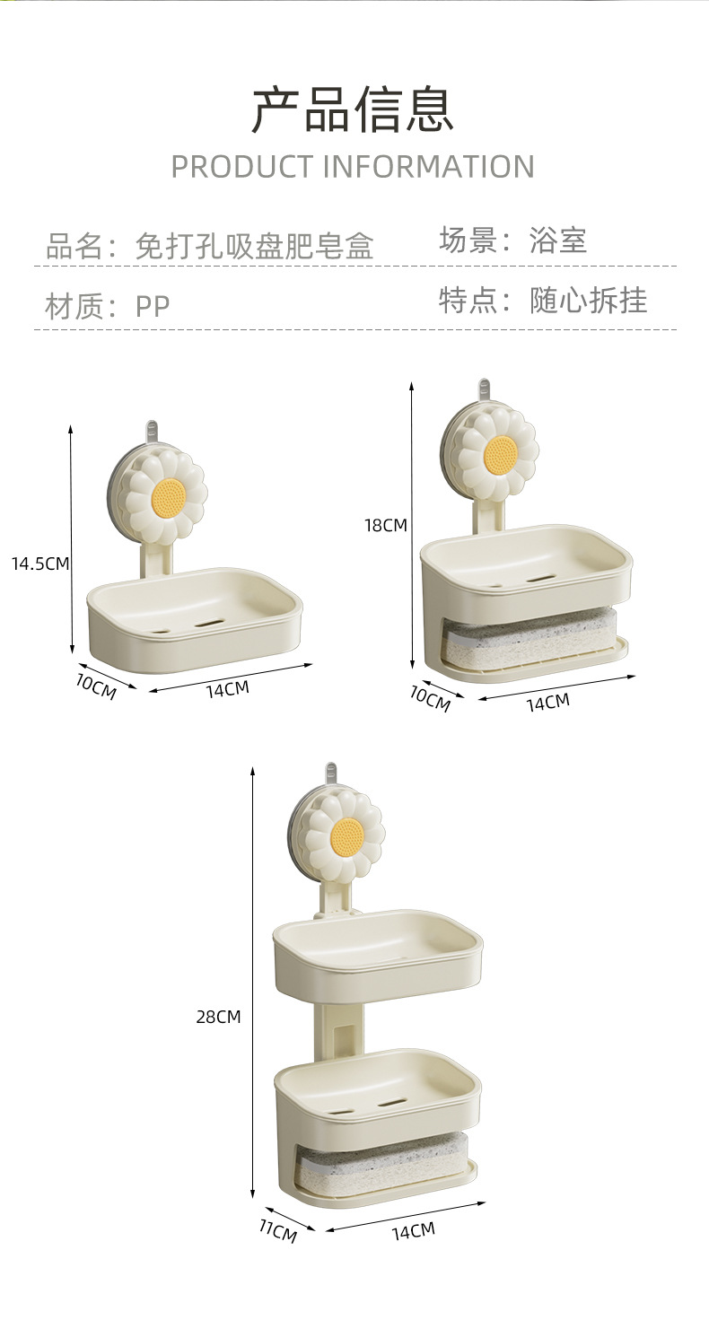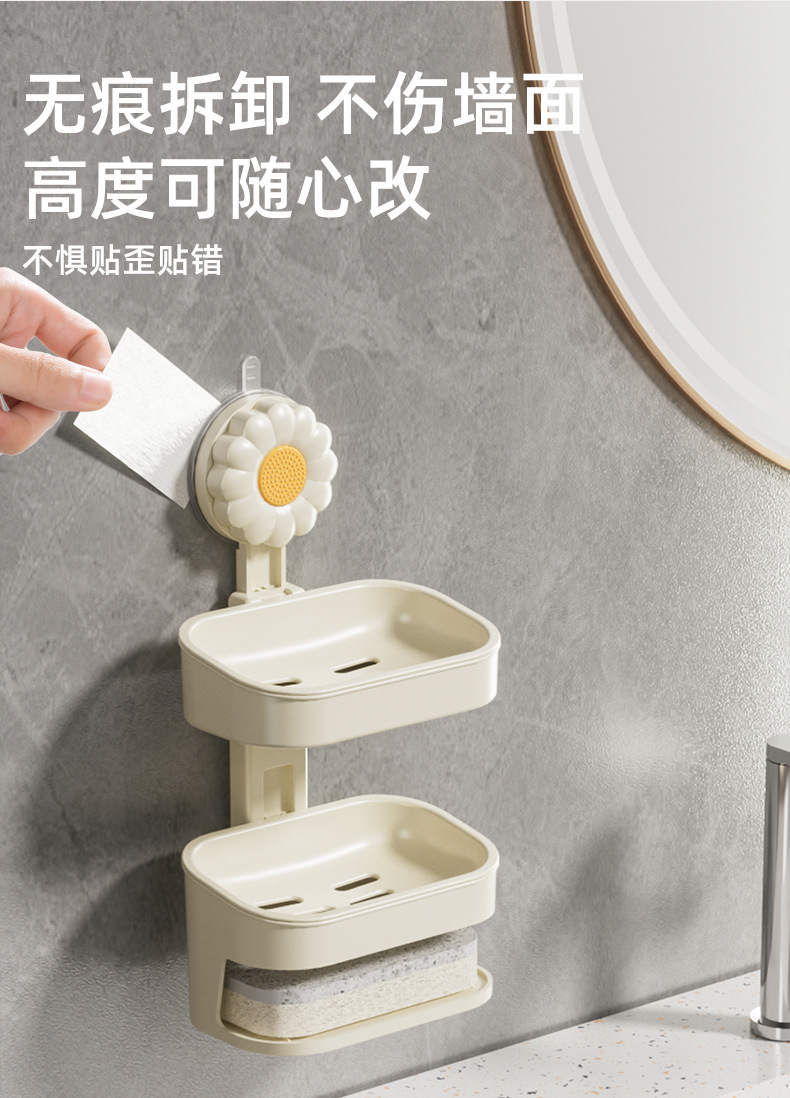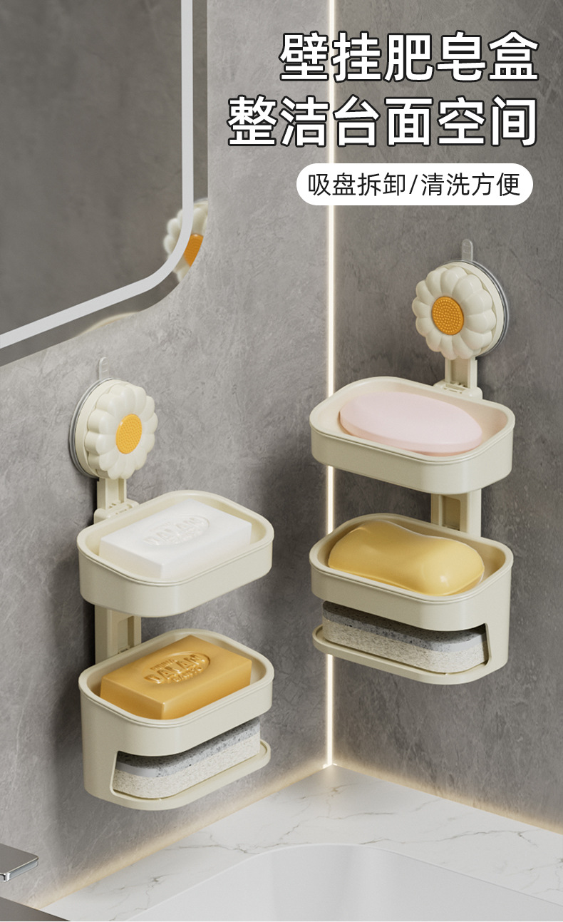 壁挂免钉吸盘多层肥皂盒浴室卫生间免打孔家用香皂盒带海绵皂盒