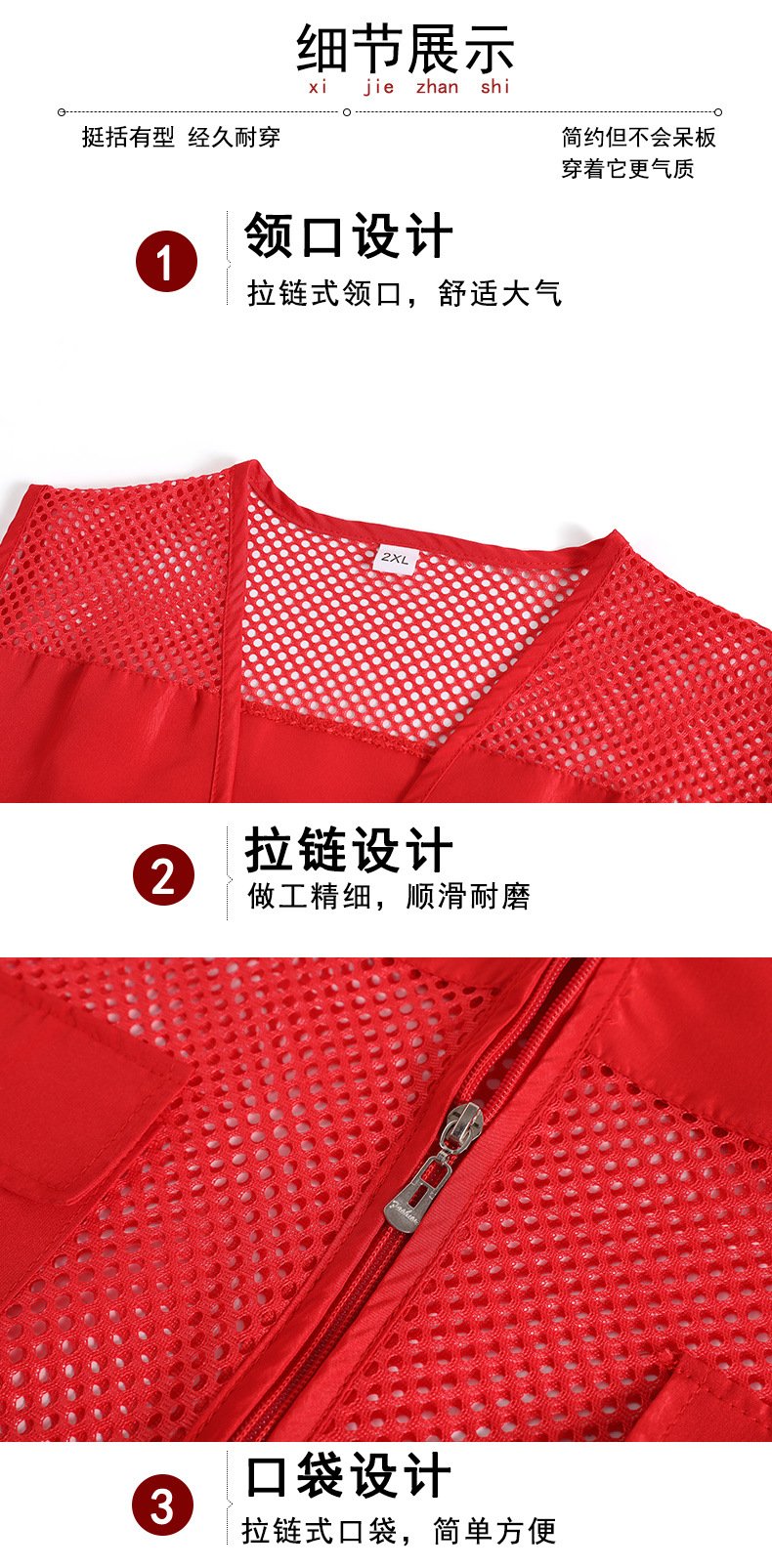 多ポケットボランティア馬甲カスタム広告シャツロゴボランティア活動赤ベストスーパー作業服卸売り