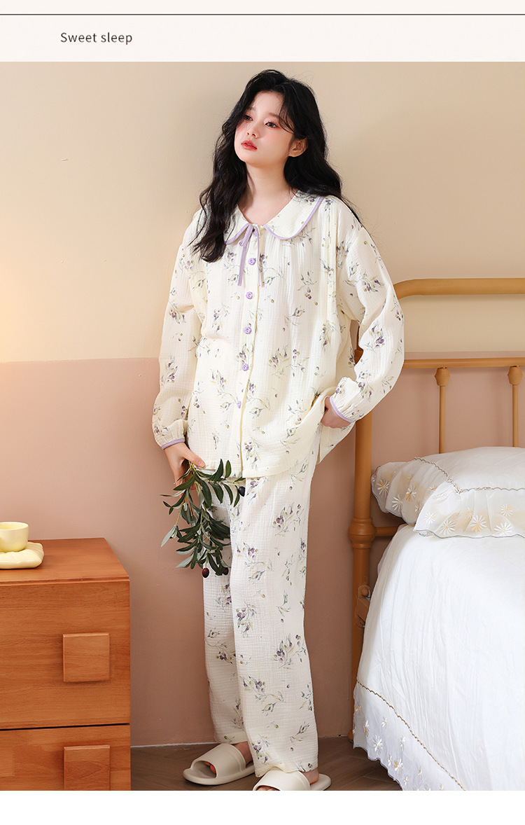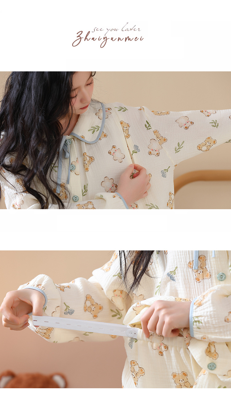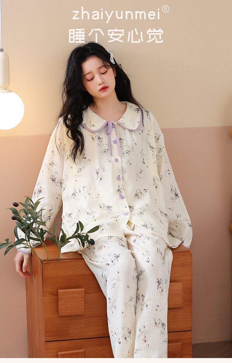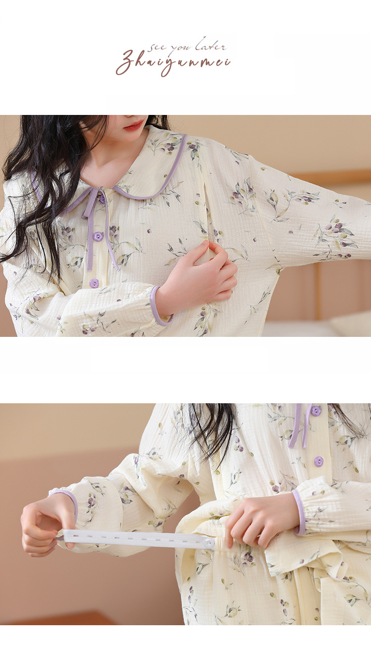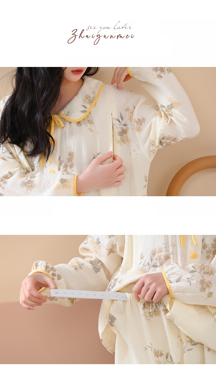 2025純綿ガーゼ薄手通気性月子服妊婦パジャマ哺乳夏6妊娠期産後授乳家庭服5