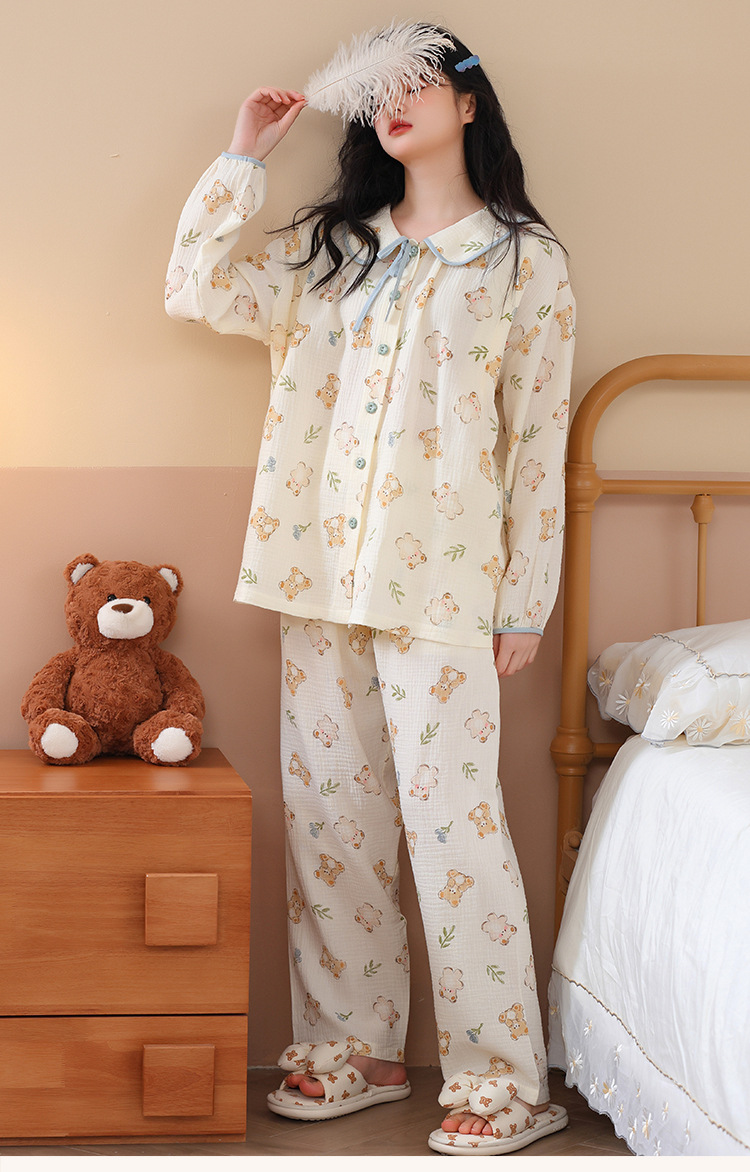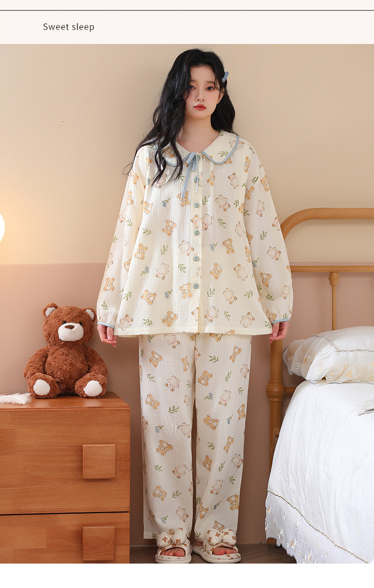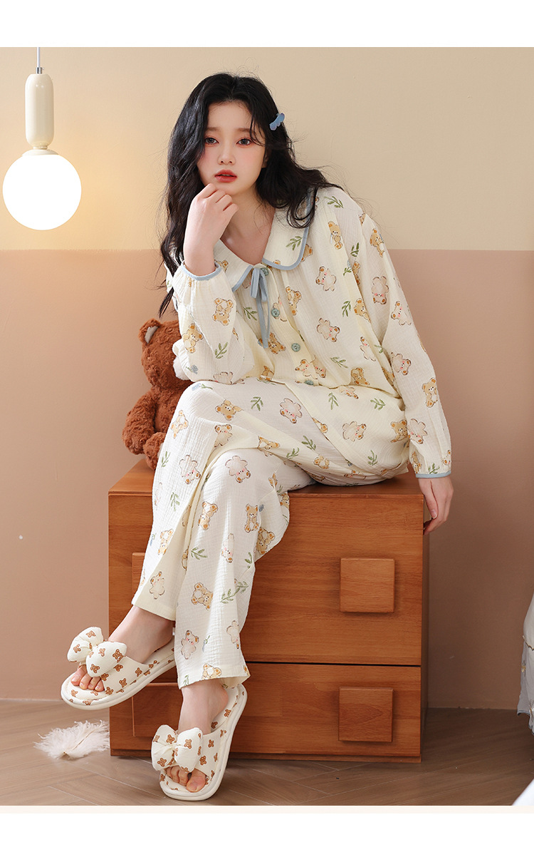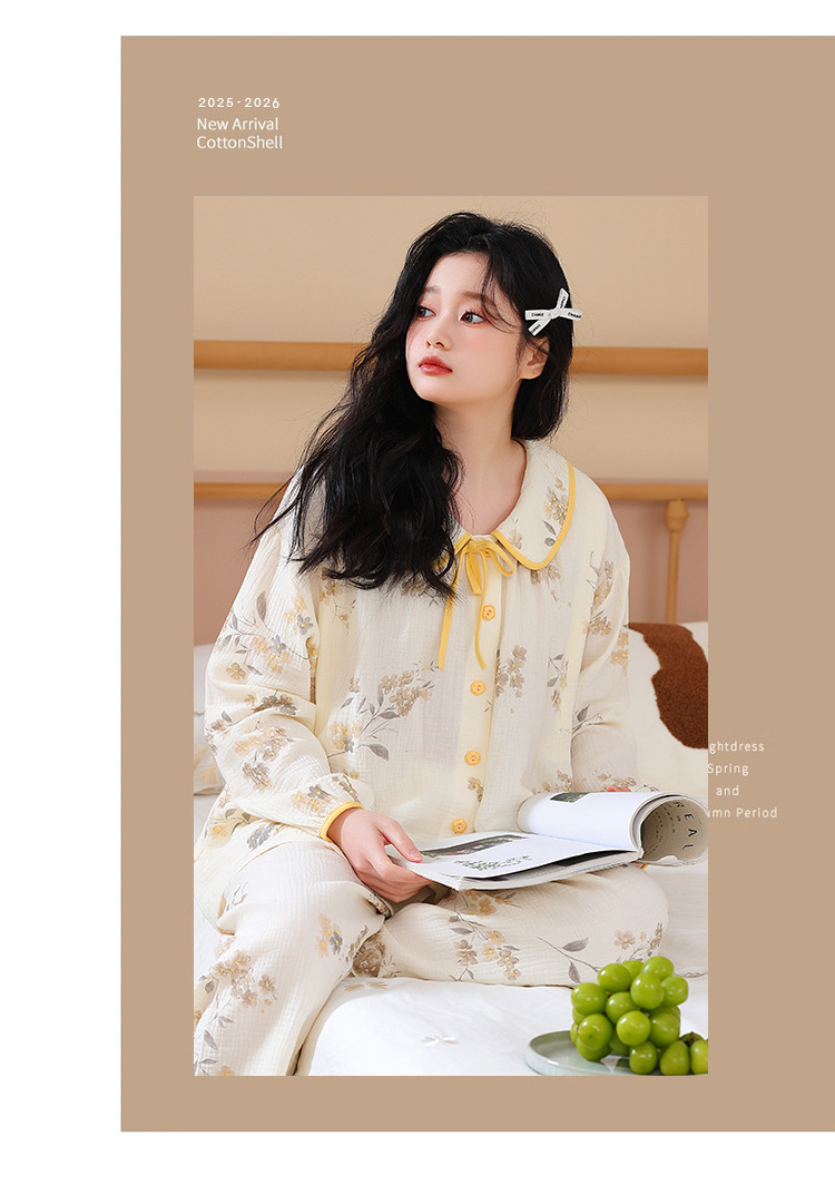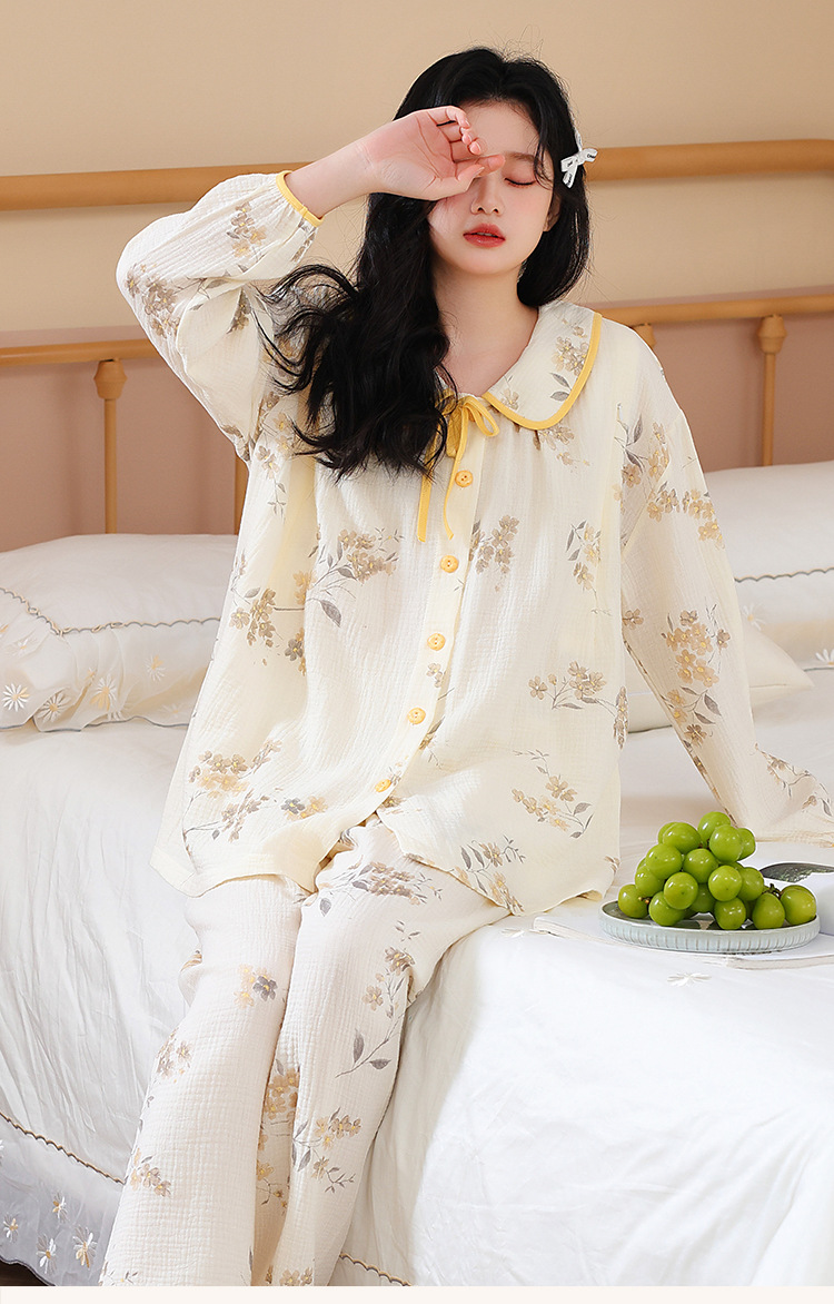 2025純綿ガーゼ薄手通気性月子服妊婦パジャマ哺乳夏6妊娠期産後授乳家庭服5