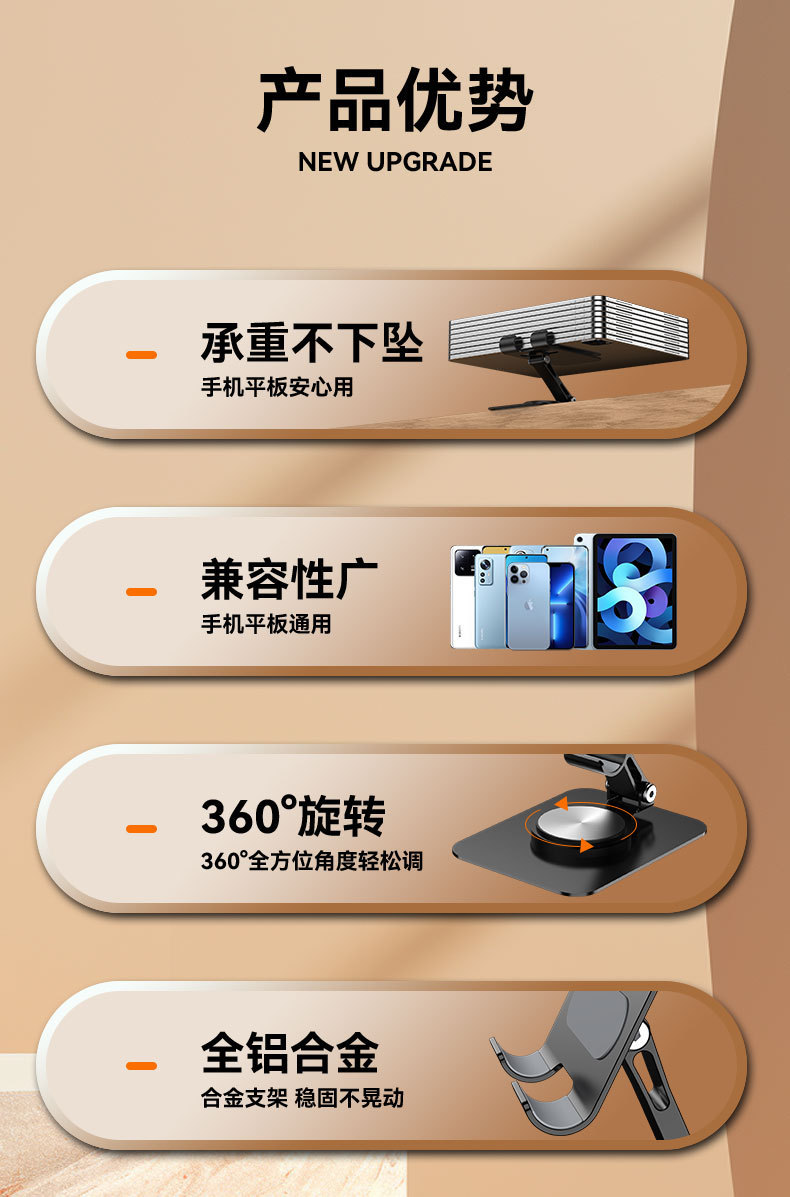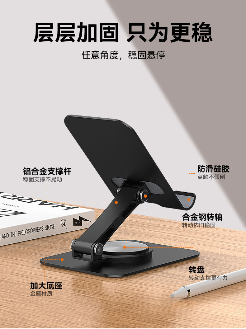 多機能回転携帯電話スタンドデスクトップ金属機械音折り畳み式怠け者ライブタブレットスタンド共通