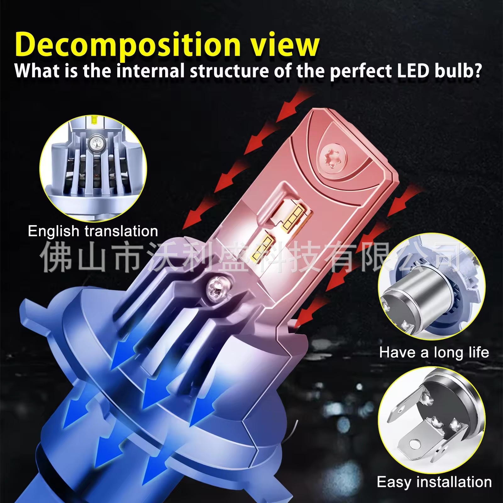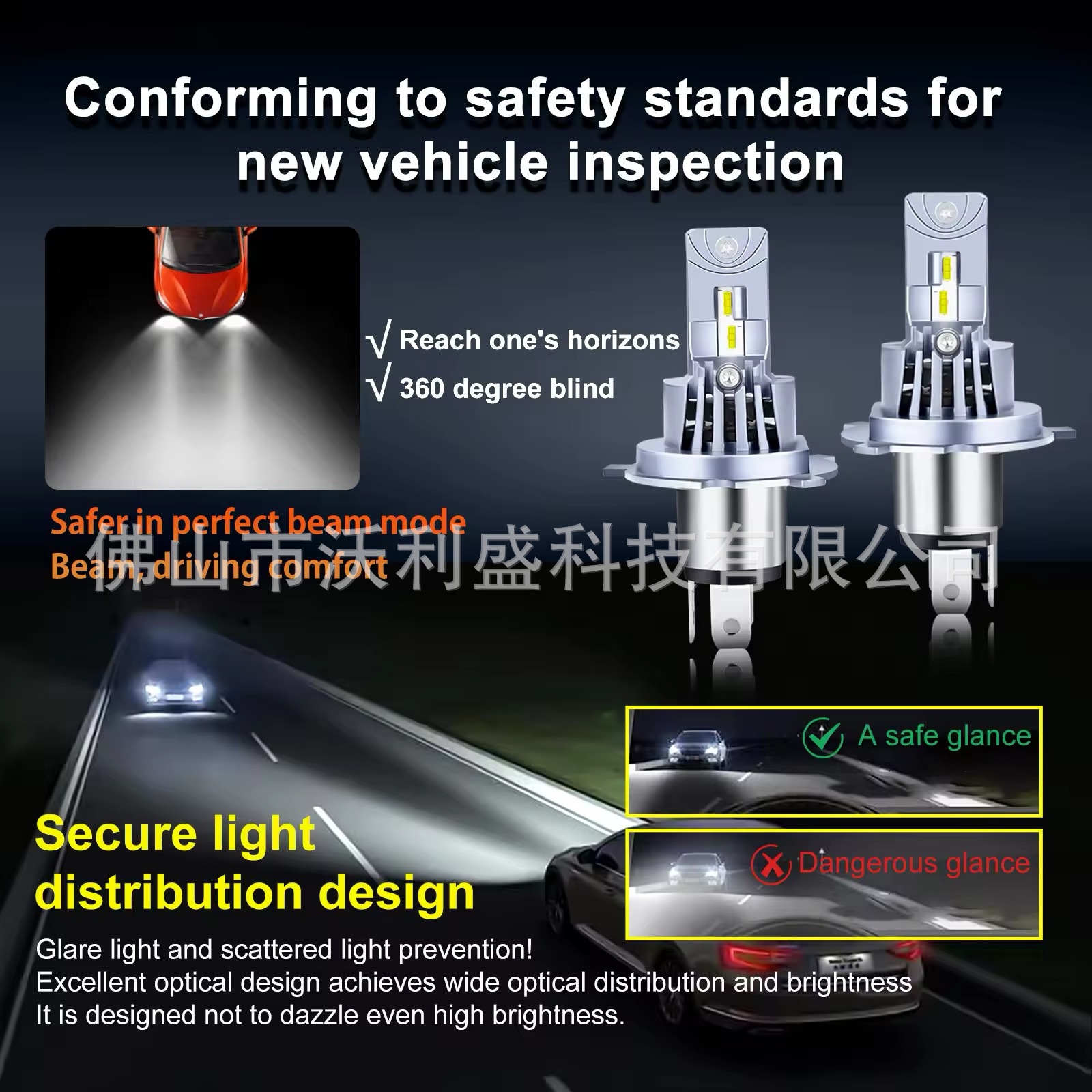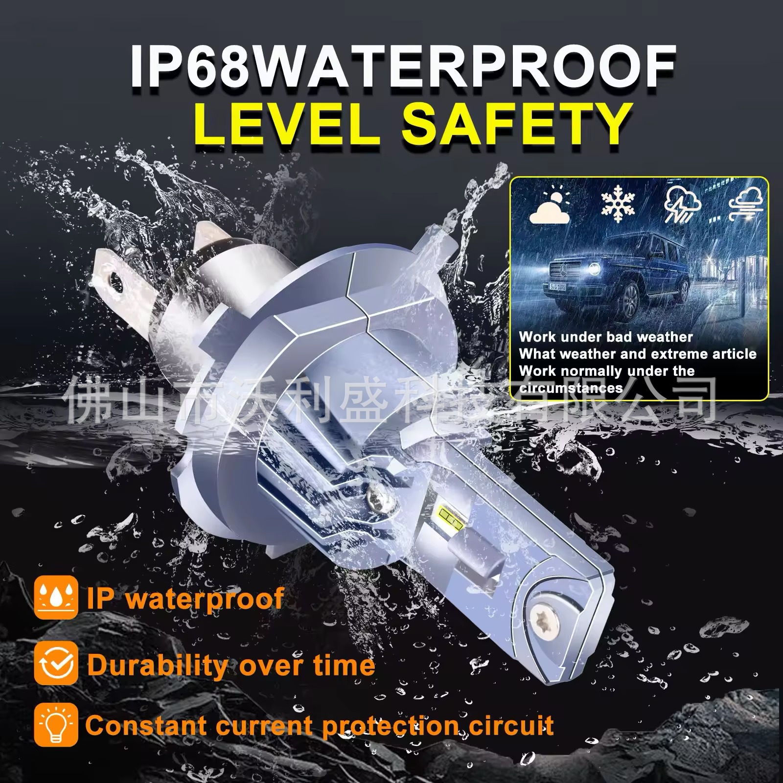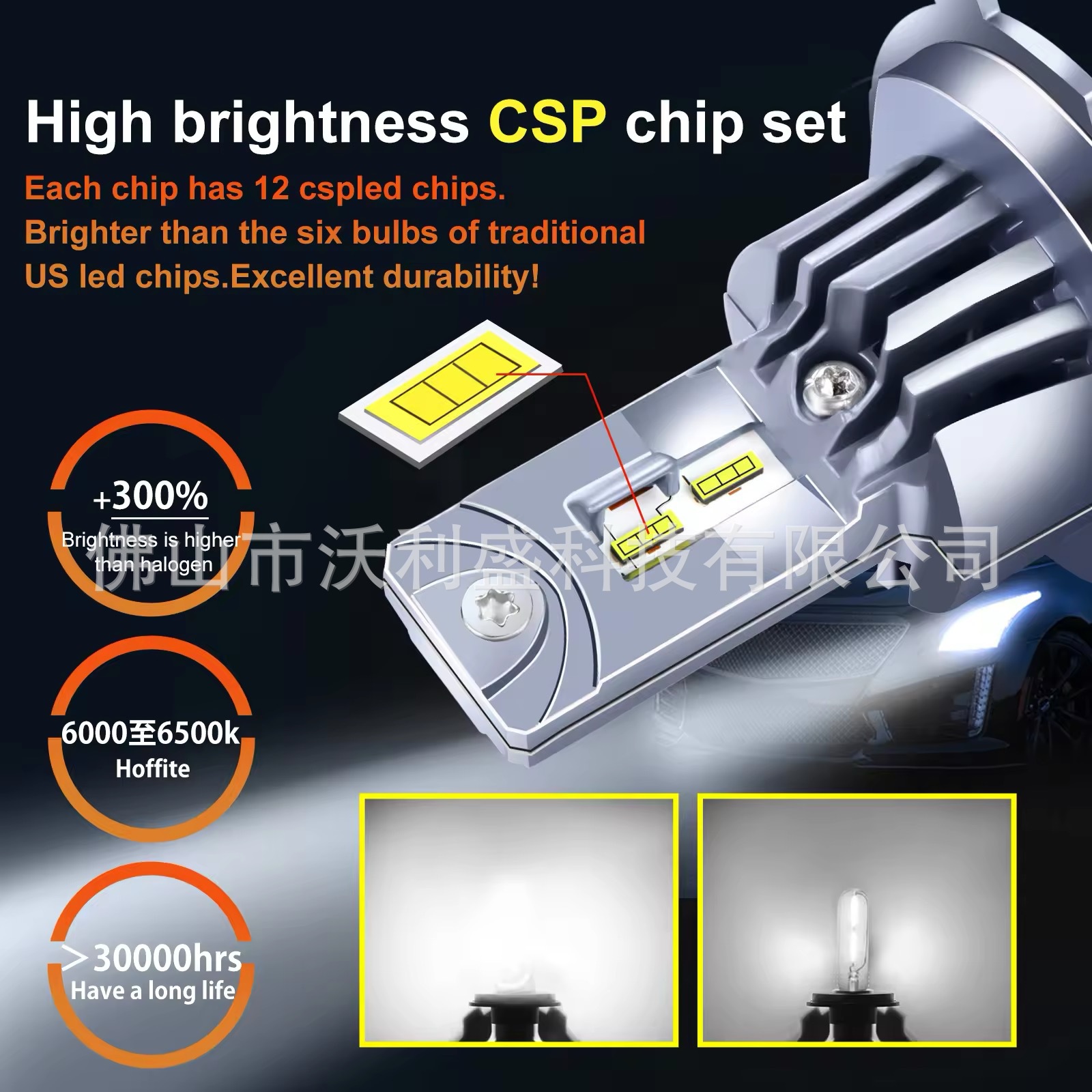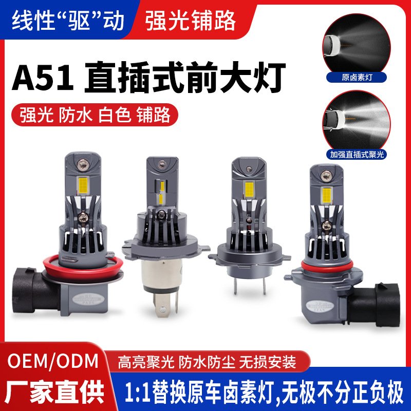 跨境A51直插大功率led前大灯 H7/H1/H4超亮一体式1:1替换汽车改装