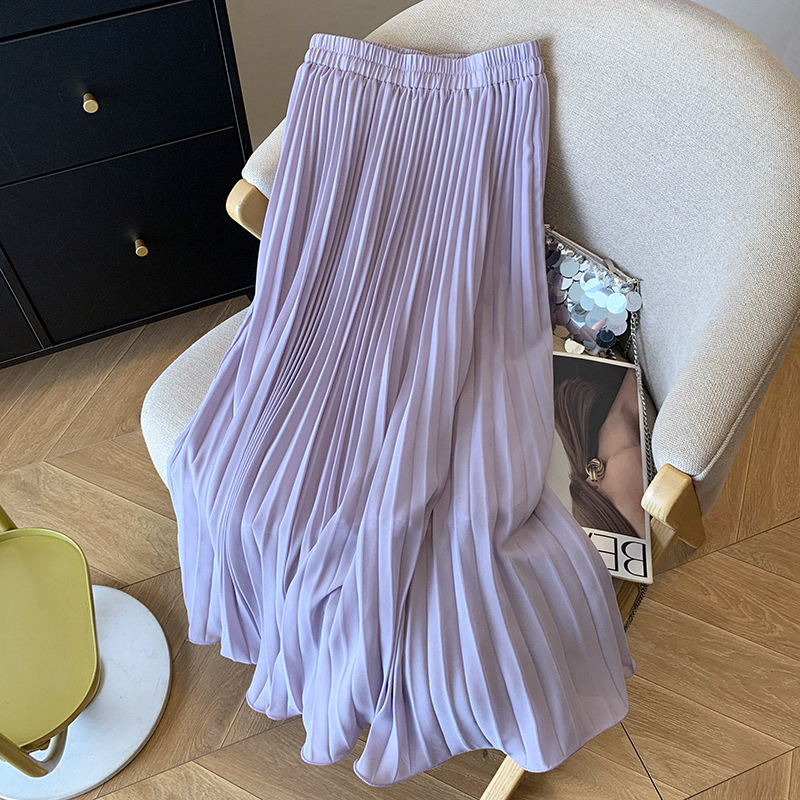 優しい風のシフォンのプリーツのスカートの2025夏の新型のハイウエストはやせているA字の中で長いスカートの女性のスカートを現します。