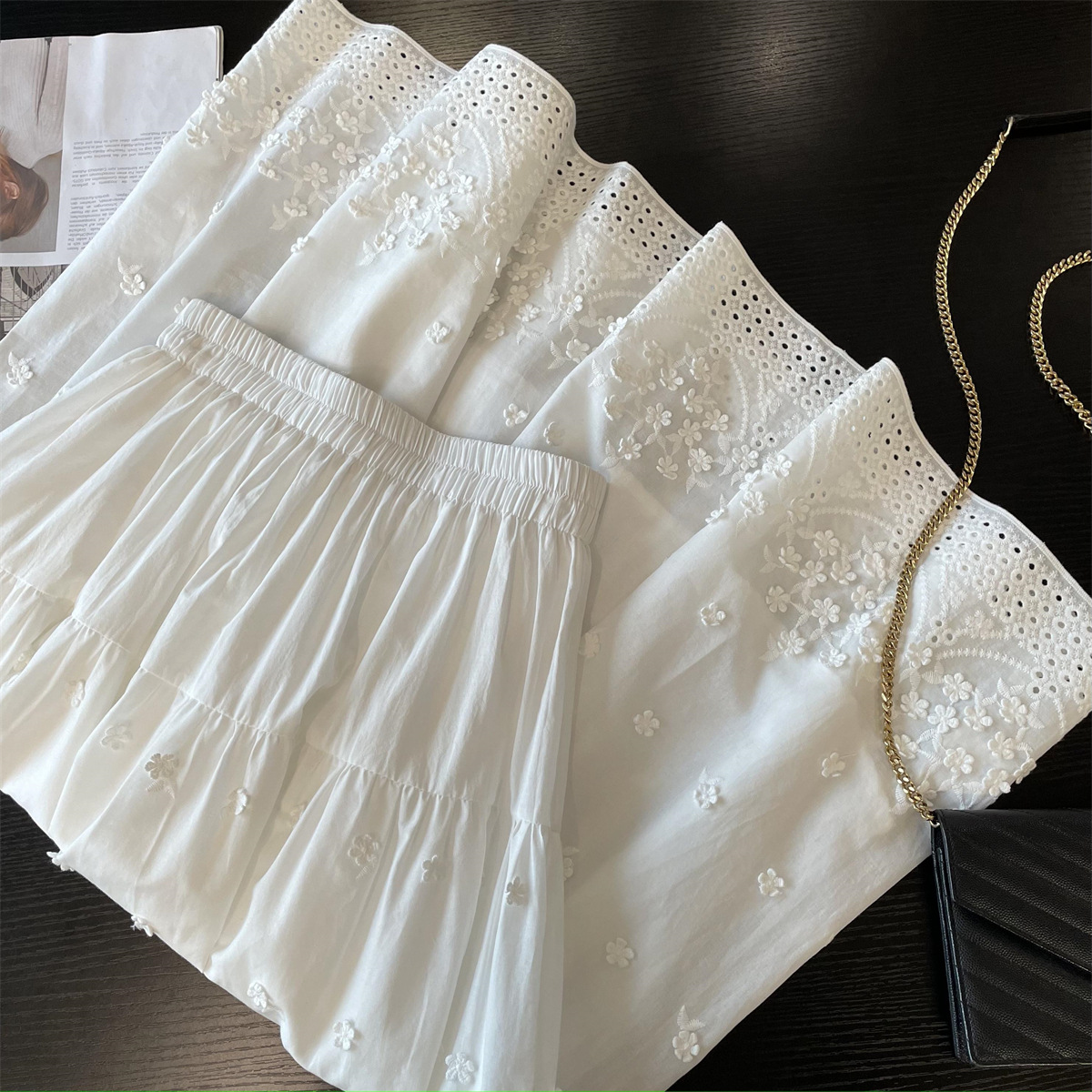 優しい風重工刺繍の透かし彫りはやせているスカートの女性2025春の新型の高腰A字のしわがゆったりしています。