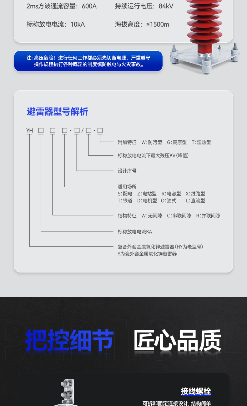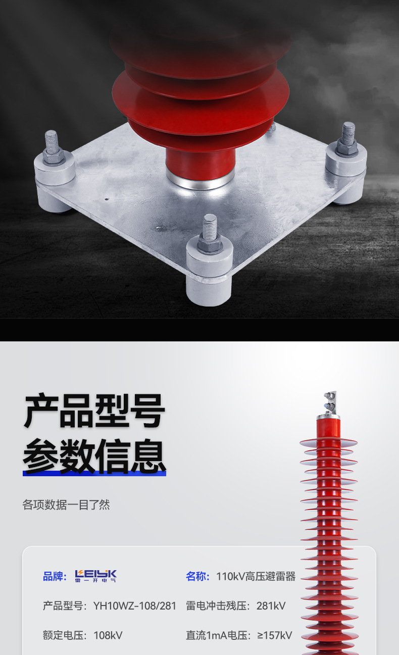 浙江雷一110kV避雷器YH10WZ-108/281高圧酸化亜鉛避雷器