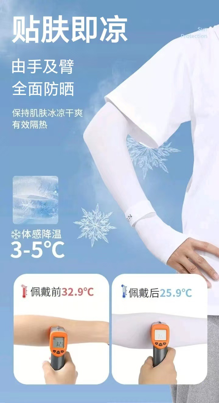 夏の日焼け止めアイスシルク袖カバー、アイススリーブメーカー卸売、在庫あり、通気性、指出し、脱落防止、通気性日焼け止め