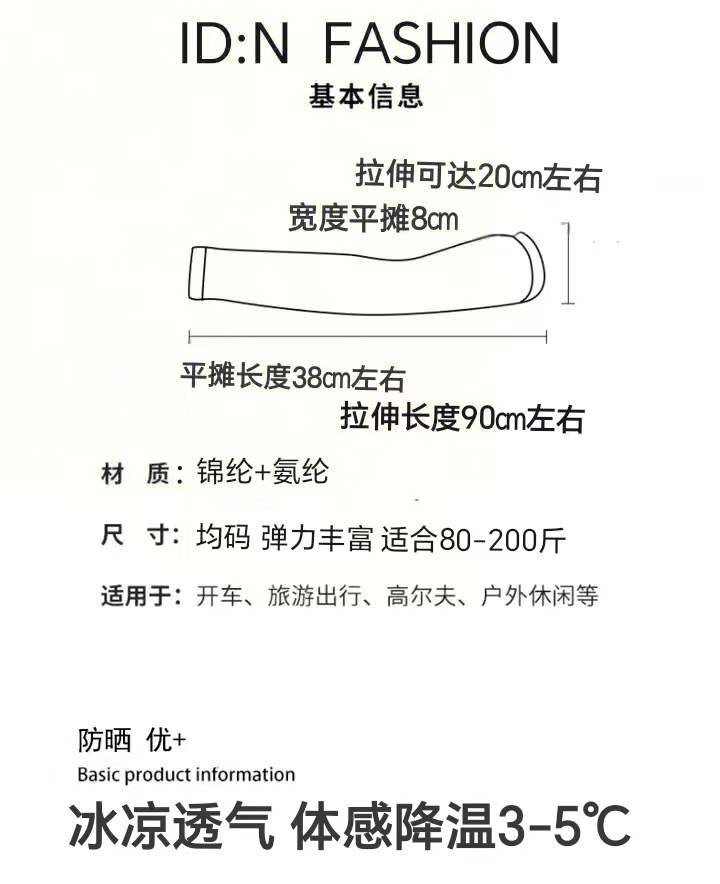 新型夏の日焼け止め氷袖延長紫外線防止氷袖屋外騎行弾力氷袖保護アーム純色袖カバー
