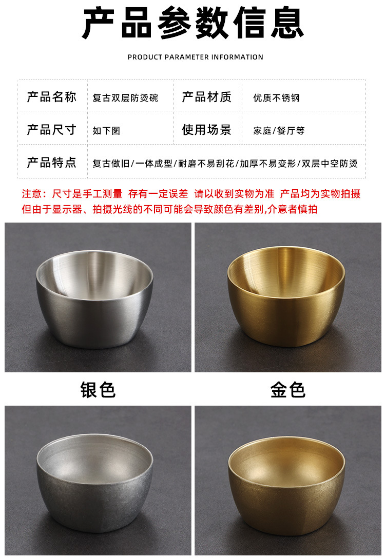 304ステンレス創意飯碗果物サラダ碗火鍋店商用セルフサービス調味料碗レトロ金色食器