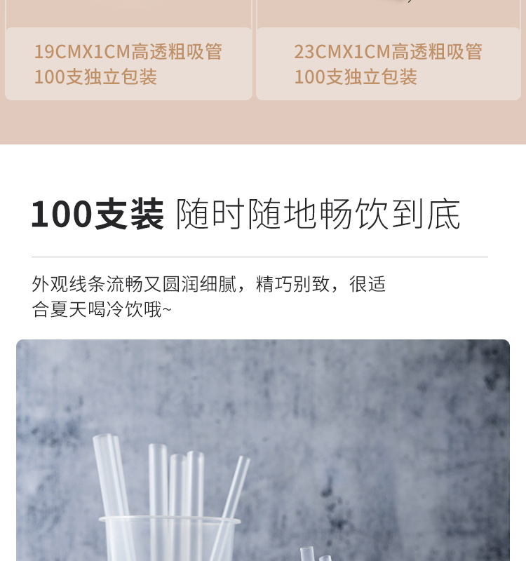10ストロー使い捨て細太ストロー00本ミルクティーストローカラープラスチック独立包装透明真珠先