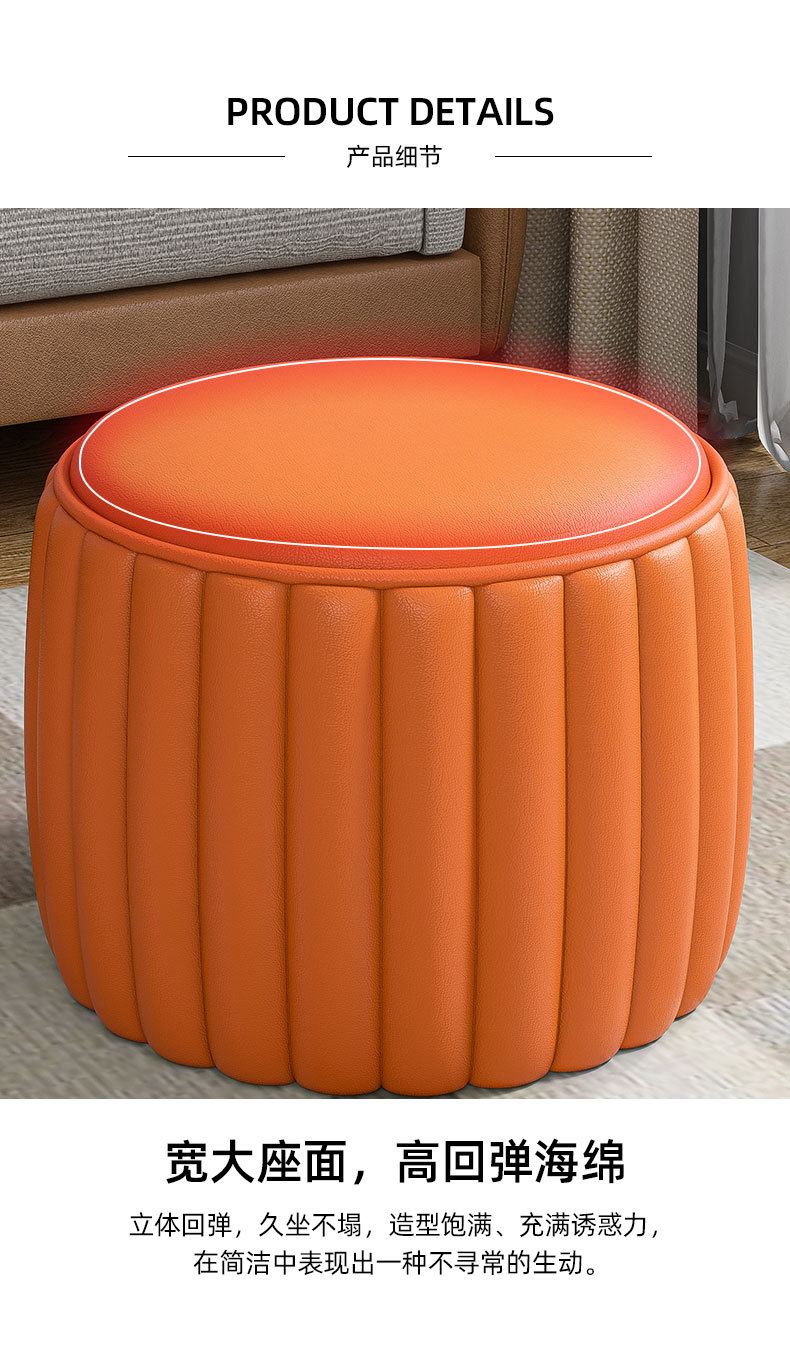 小凳子家用矮凳南瓜小板凳高级感客厅实木茶几圆凳简约换鞋凳皮墩