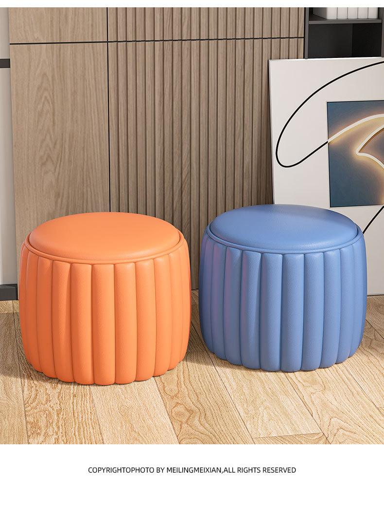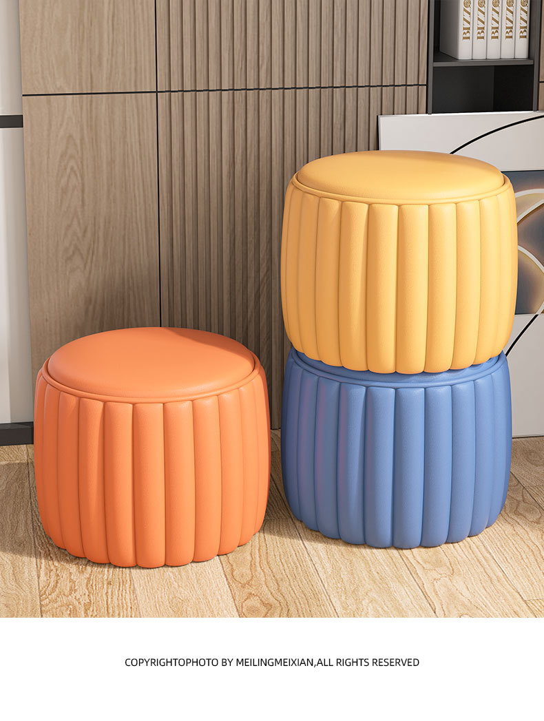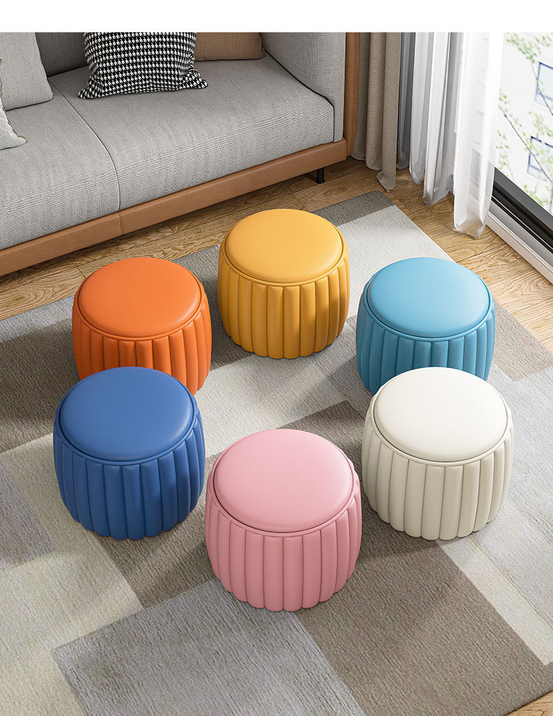 小さなスツール、家庭用ロースツール、軽くて豪華なソファスツール、リビングルームのコーヒーテーブル、丈夫で耐久性のある丸いスツール、ミニマリストの猫の爪とぎ革の靴交換スツール