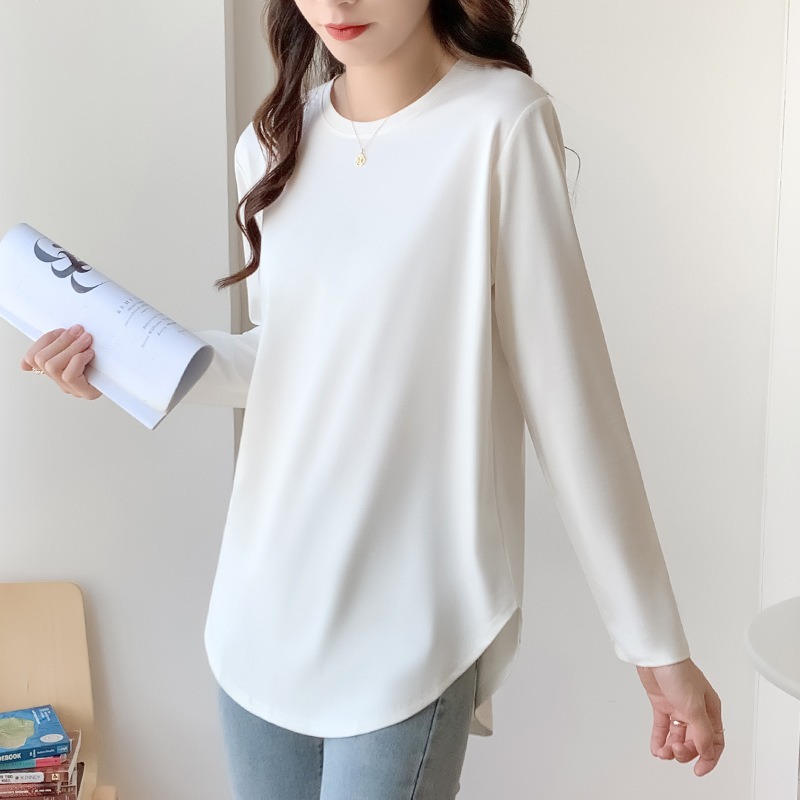 中長のアーチ型の裾の長袖のtシャツの女性の2024春秋の新型はやせています。