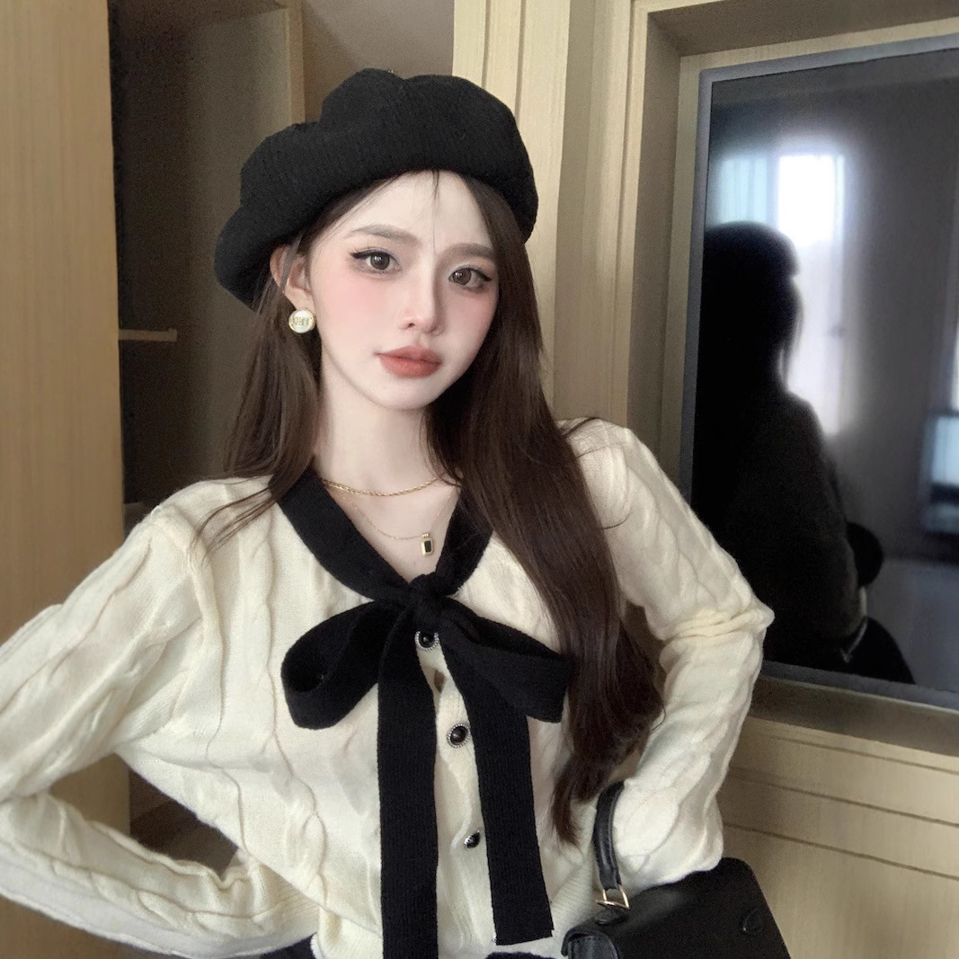 6112 # フランス名媛気質小香風セーター女性秋冬ショート麻花ニットカーディガン上着