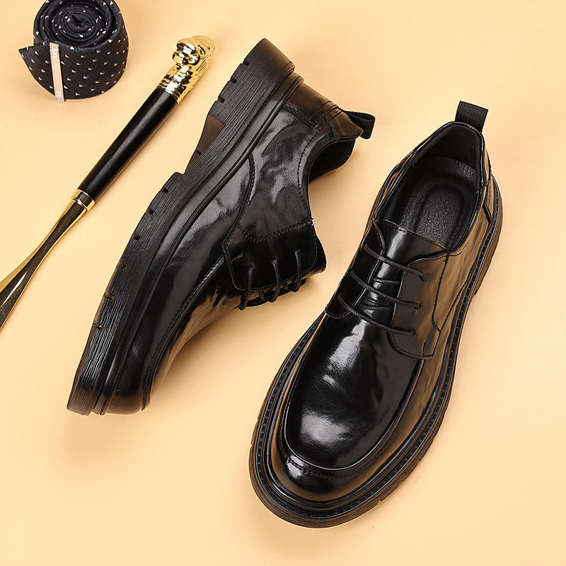 本革牛革新型秋ビジネス正装革靴男丸首厚い底カジュアルシューズ新郎結婚ソフト底革靴