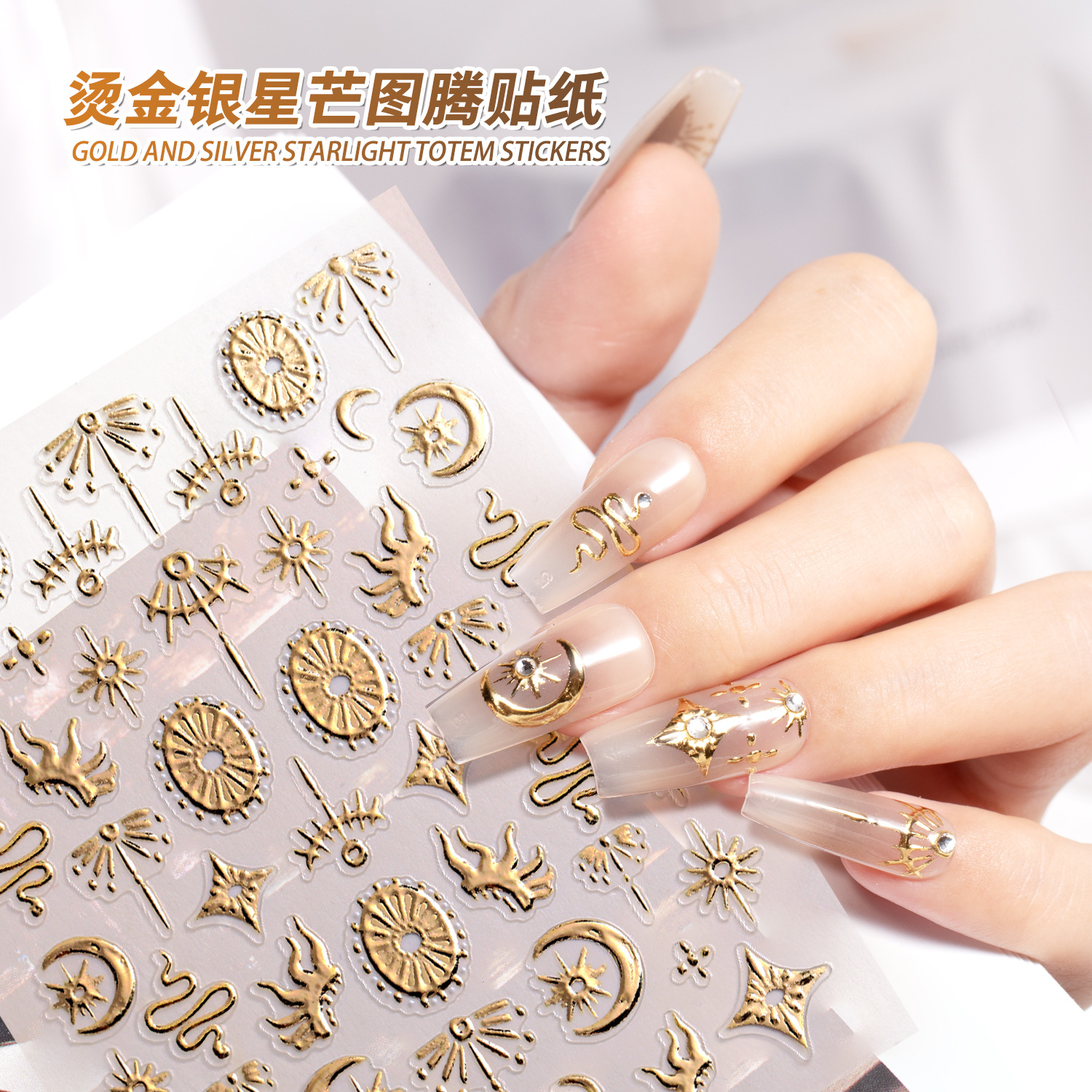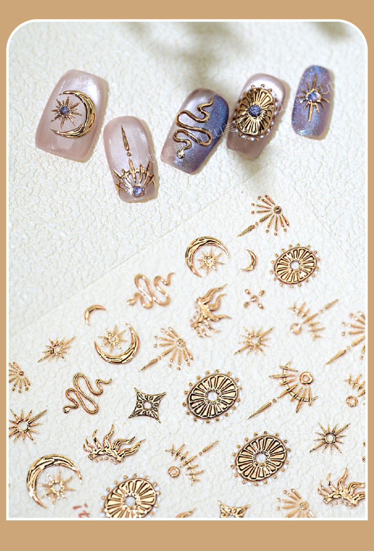 欧米星月トーテムネイルシール5Dレリーフレトロ箔押し金銀蛇トーテムネイルシールアクセサリーSLモデル