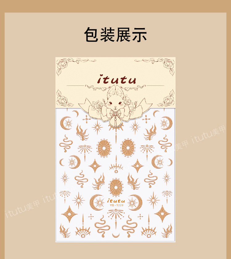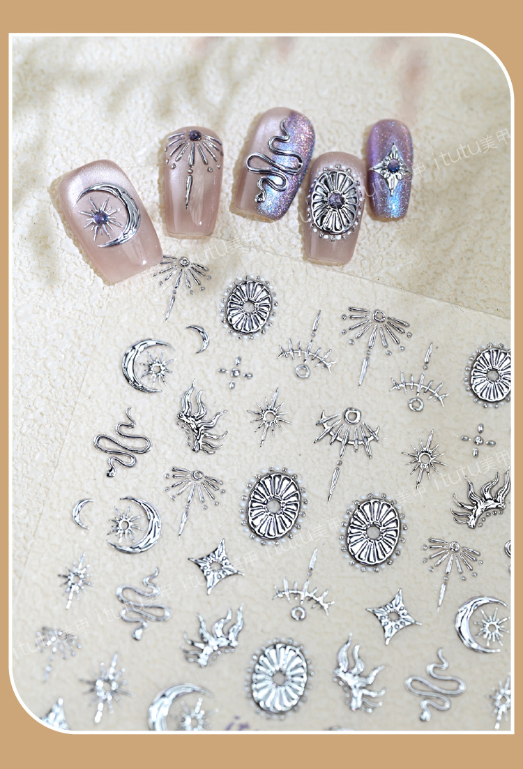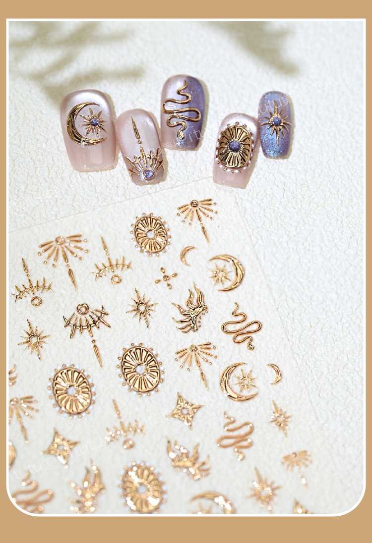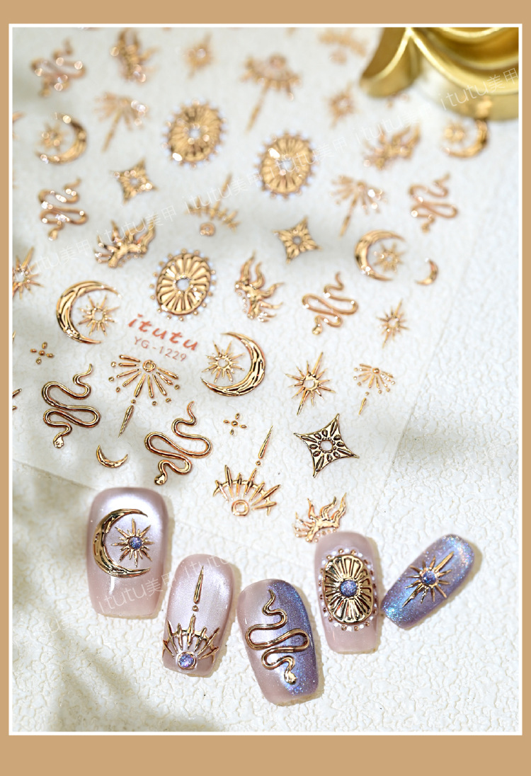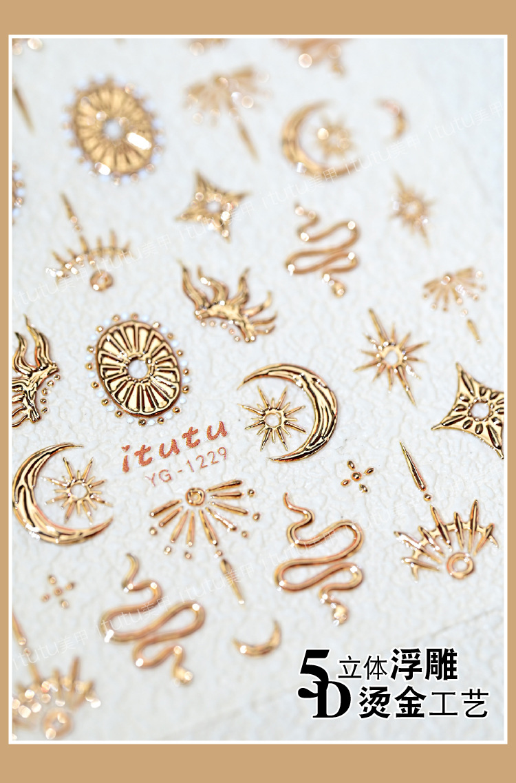 itutu新款复古星月图腾蛇5D立体烫金美甲贴浮雕指甲贴花背胶1229