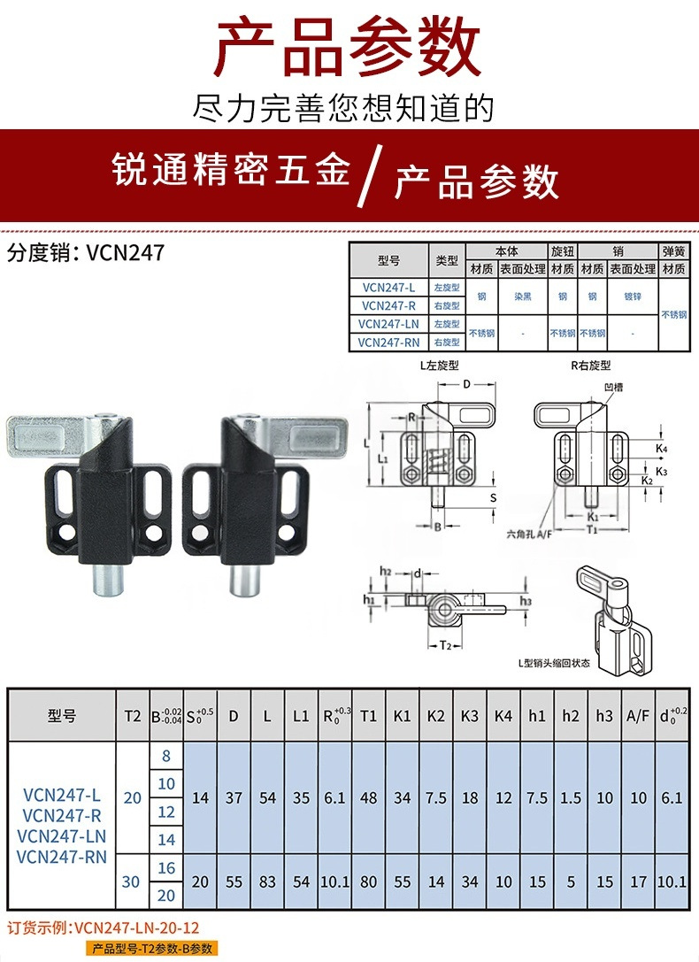鋭通精密VCN247フランジハンドルL型セルフロックノブプランジャ左右回転プランジャ工場ZAU割出しピン