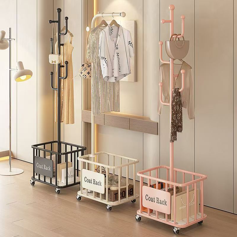 クリームの軽い豪華な床の服の帽子の棚の現代の簡単な縦型の移動可能なハンガーの家庭用多機能の服の棚を掛けます。