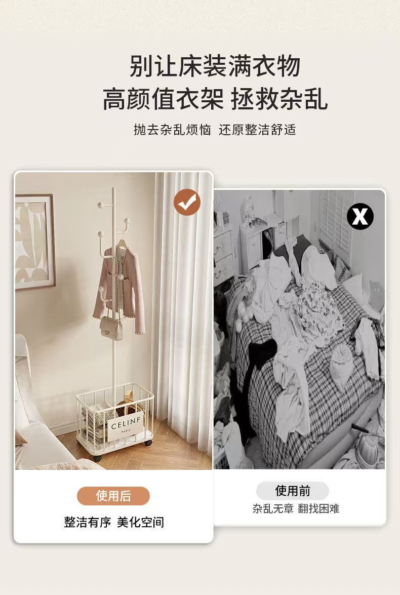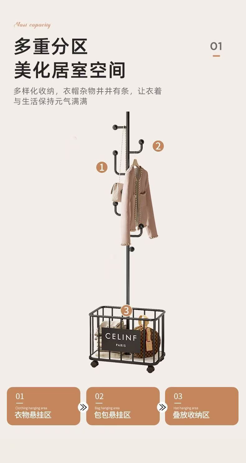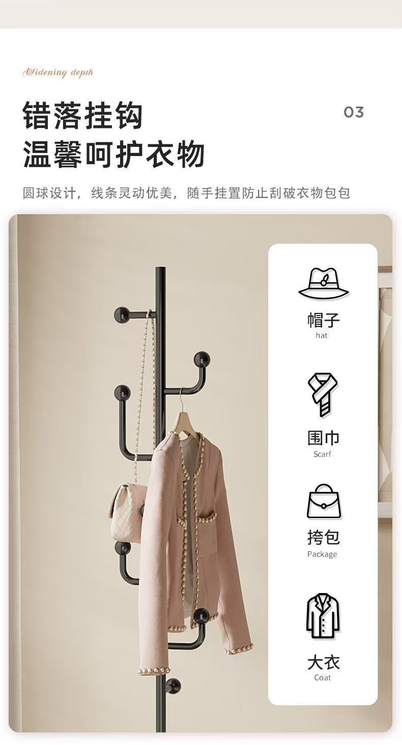 多功能挂衣架落地卧室衣帽架家用置地轻奢客厅置物晾衣服挂包架子