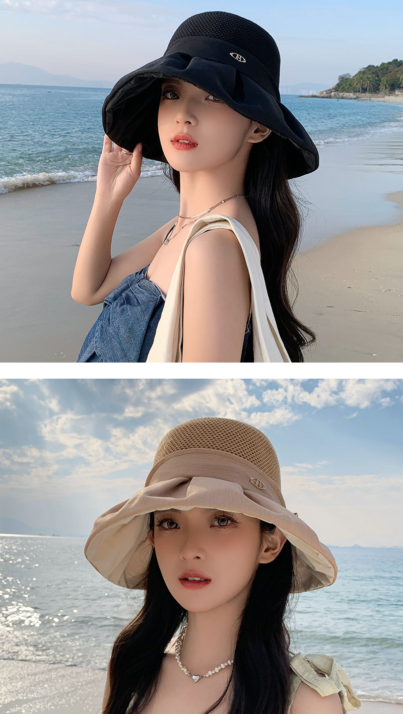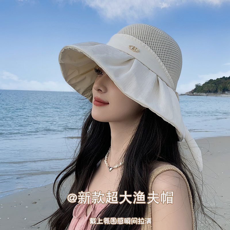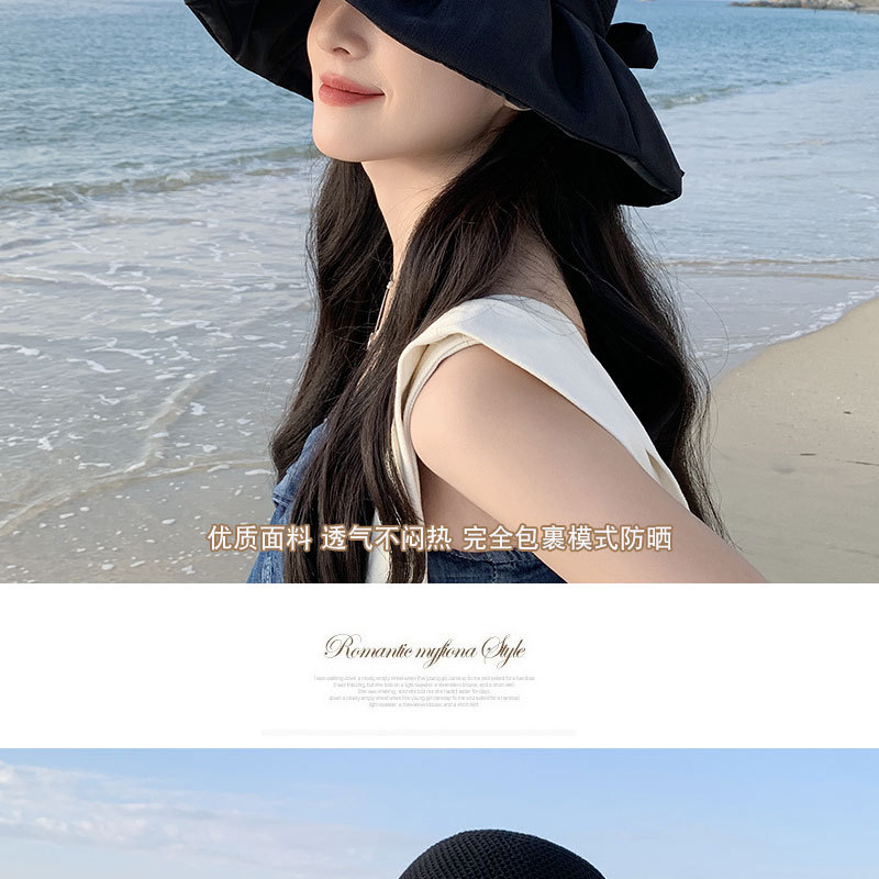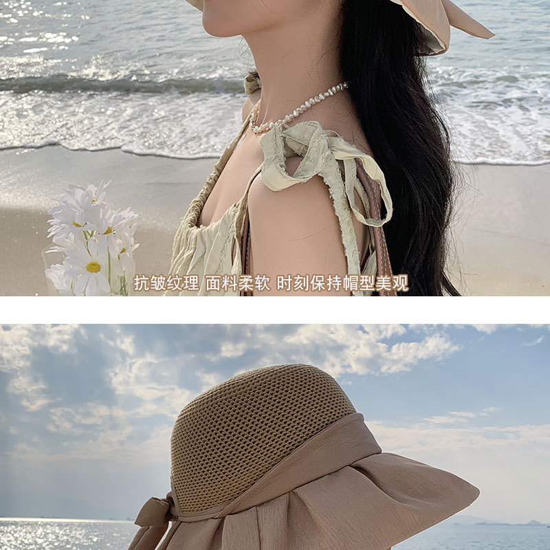 特大つば麦わら帽子さん夏の日焼け止めは帽子に沿って海辺の蝶結びのビーチ帽の日よけ帽子の太陽帽です。