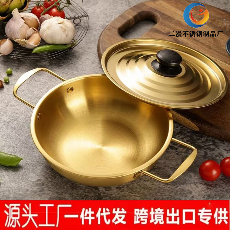 韓国式カップラーメン鍋双耳部隊鍋電磁炉金色ラーメン鍋海鮮鍋厚いステンレススープ鍋