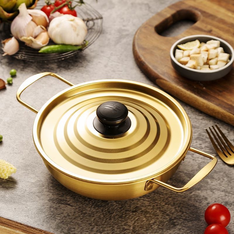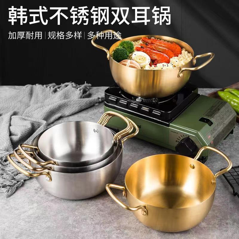 ネット赤海鮮金鍋ステンレス韓国式鍋両耳湯ネット赤カップラーメン金色の厚い耐久性強化小乾燥鍋