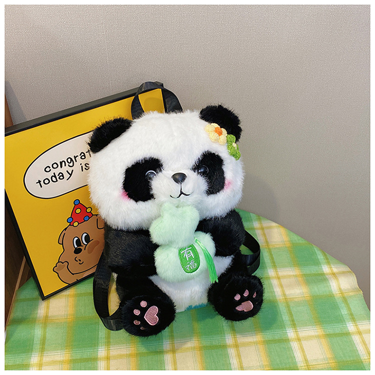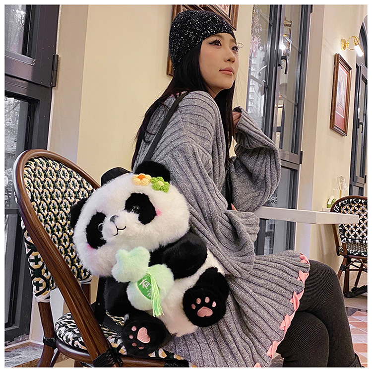 2025新型の花のパンダのぬいぐるみのリュックサックが可愛いです。