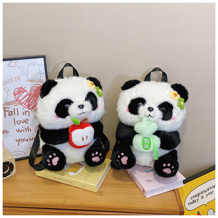 新しい熊猫バッグぬいぐるみかわいいバックパック幼稚園バックパック牛脂果バッグ幼稚園バッグ卸売り