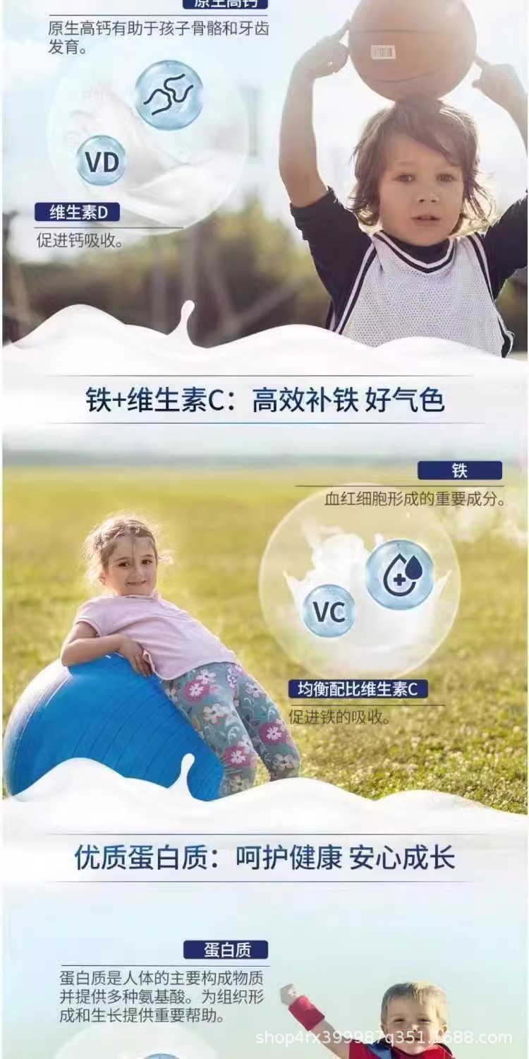 儿童奶粉3到15岁青少年学生成长奶粉助力高个子全脂高钙无蔗糖