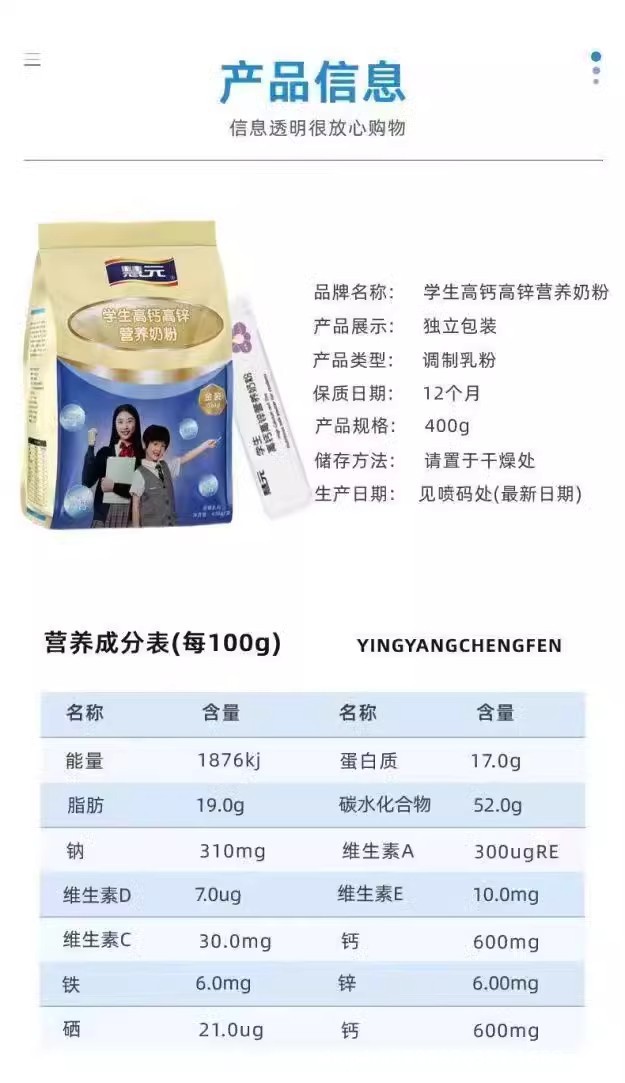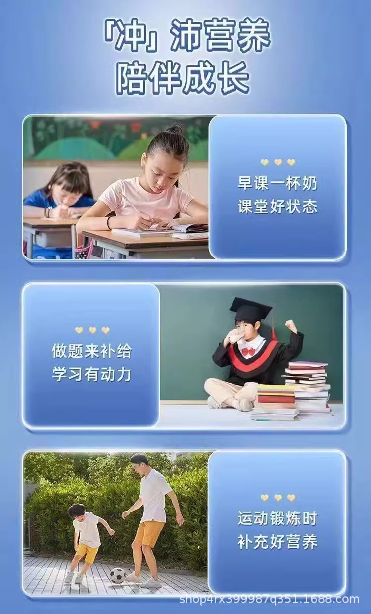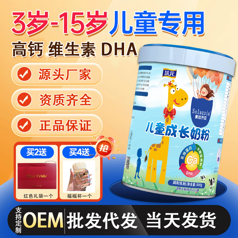 学生用粉ミルク、個包装、9~15歳、背の高いお子様向け、全脂肪、高カルシウム、高亜鉛、無糖、子供の成長用粉ミルク