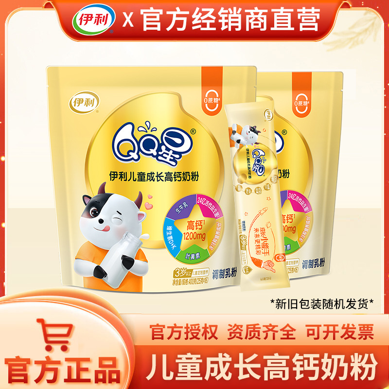 伊利qq星の子供の成長の高カルシウムの粉ミルクの400gの袋の砂糖なしで牛の粉ミルクの正規品の卸売りを添加します。