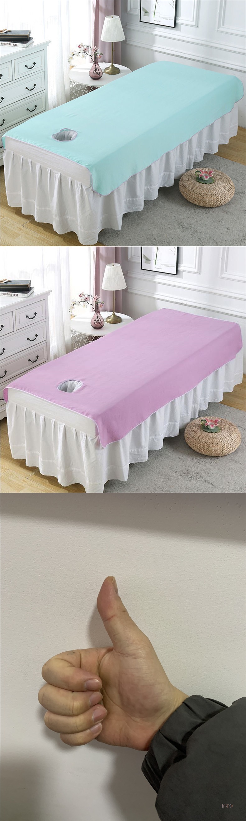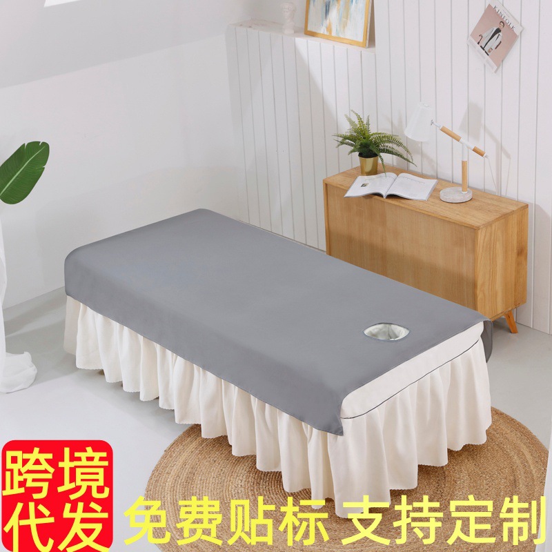 一件代发四季通用床单美容院推拿按摩床专用纯色磨毛带洞美容床单